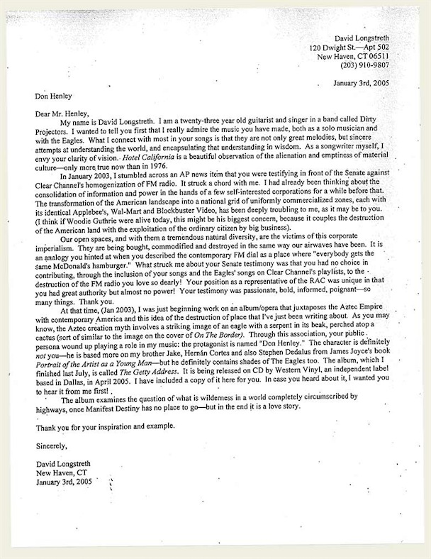 Then the band came back out to do a cover of Bob Dylan's "I Dreamed I Saw St. Augustine" and a handful of DP originals. Photographer Andrew Youssef, who capture the event for us, says the show's program included the lyrics to The Getty Address, and a reprint of Longstreth's letter to Don Henley: