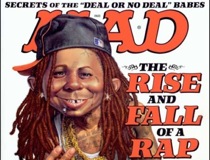 From the top of the charts to duetting (duetting = doing nothing but holding a guitar and making "oh" faces says P4K) with Kid Rock at last night's Country Music Awards, Weezy's mug is everywhere. Everywhere but the cover of Mad magazine, because that's where Alfred E. Neuman's superimposed (on Lil Wayne's body). There are a lot of questions you're entitled to ask after this, like "who let Lil Wayne into the CMAs?" or "Mad is still in production?" or "seriously, who let Lil Wayne into the CMAs?" I have no answers. But I do think the Weezy takeover is amusing. Read more about the CMAs bit at MTV.com, and push on for a full shot of that Weezy E. Neuman cover.
