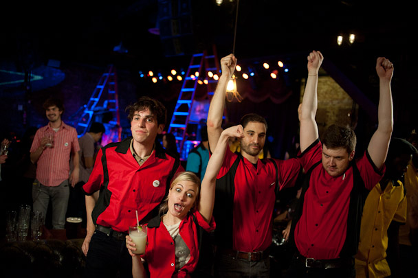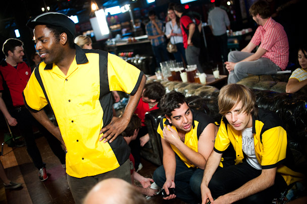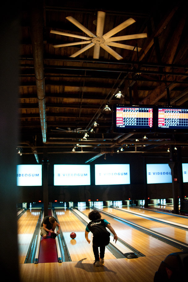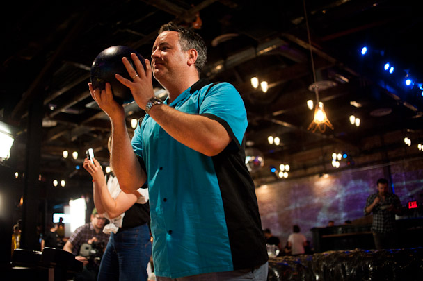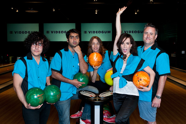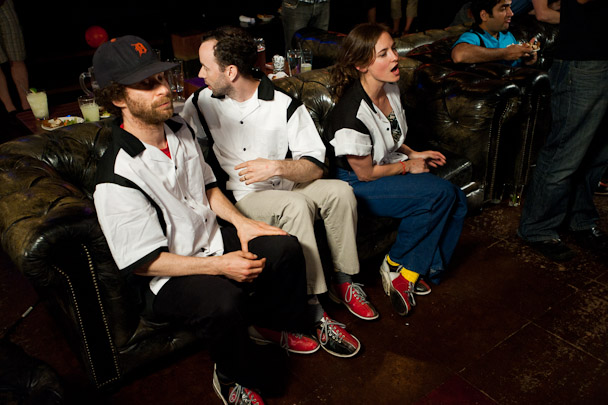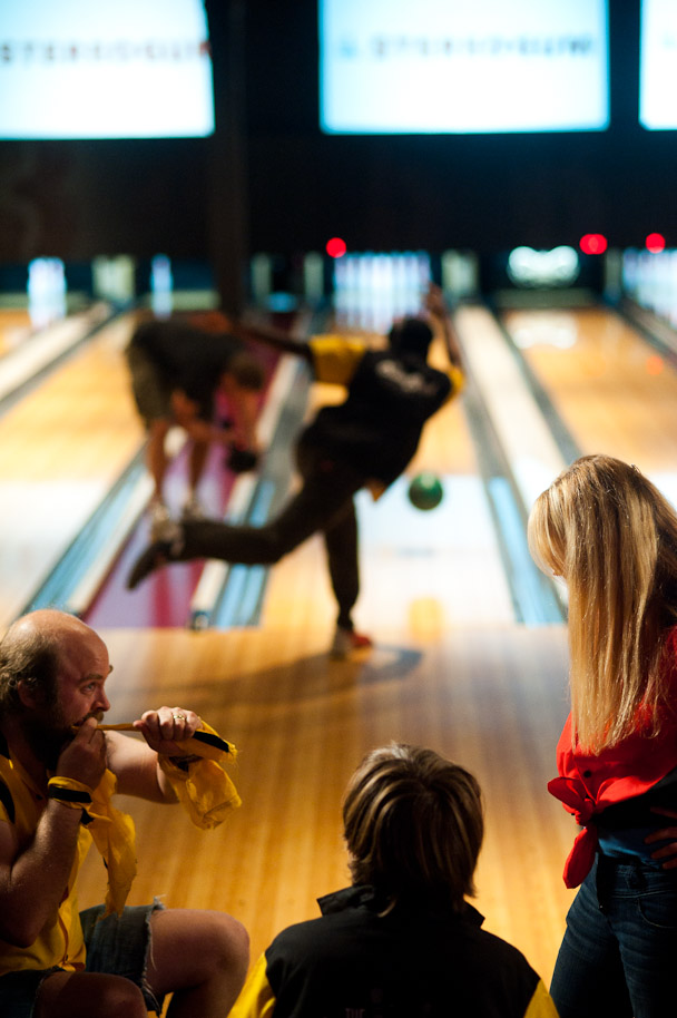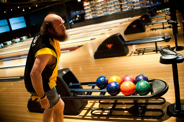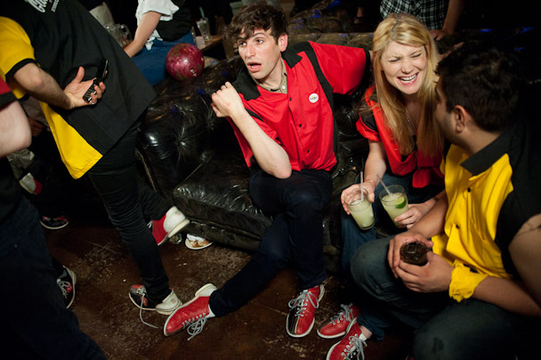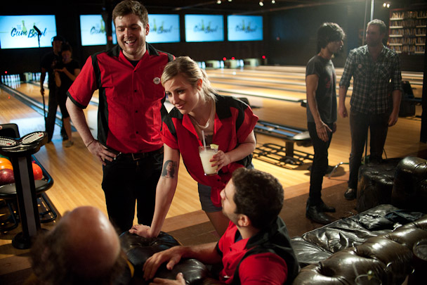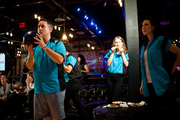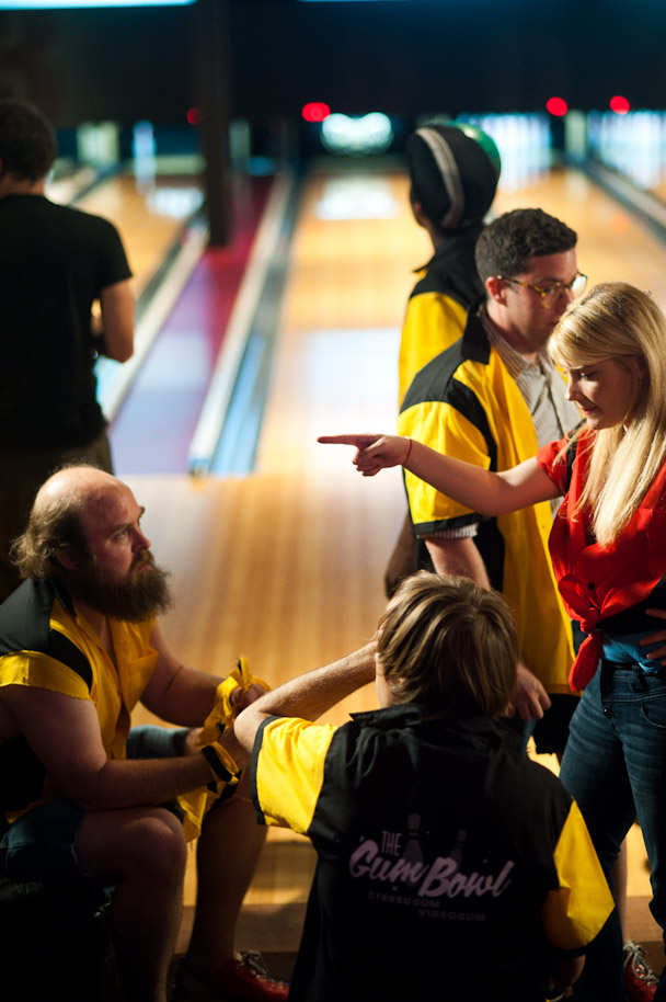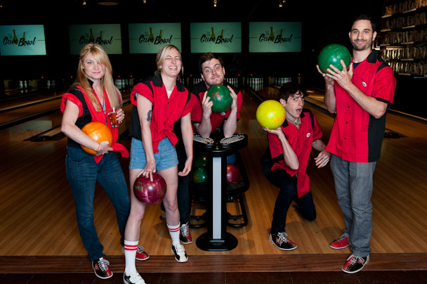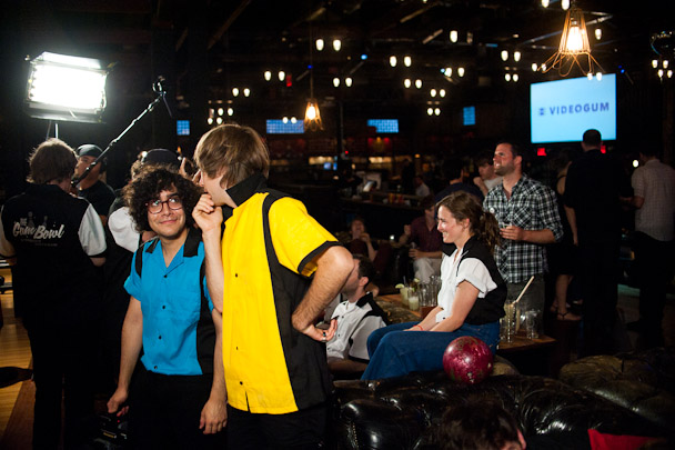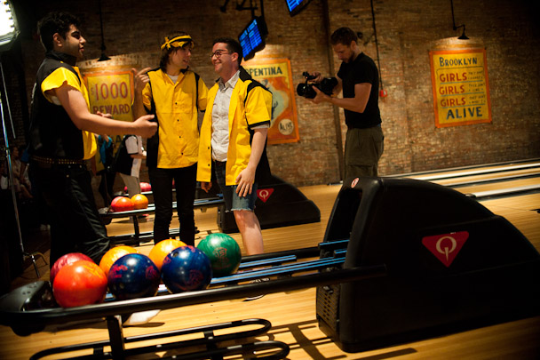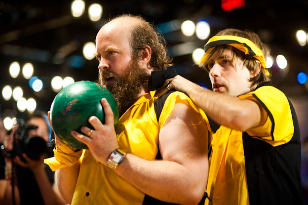 Imagine getting a bunch of your favorite comedians and musicians into a bowling alley, telling them they were there for a good cause, then getting them liquored up and to talk trash on each other while throwing gutter balls for charity. Bring video cameras. And still cameras. Sit back and watch the madness unfold. Yesterday's 'Gum Bowl tournament, benefitting The Adirondack Council, was pretty major. After it all, we had Woods, Effi Briest, and DJ St. Vincent play a free concert -- and we'll have some stuff to show you on that front -- but for now, the bowling tournament. We'll have plentiful video highlights (which are outrageous, and awesome) very soon. First up: So many photos. Our gallery functionality only allows 40 pics at a time, but every last one of Ryan Muir's shots from the event deserve to be seen. So you'll get 40 here, and another gallery soon of the Behind The Scenes action.