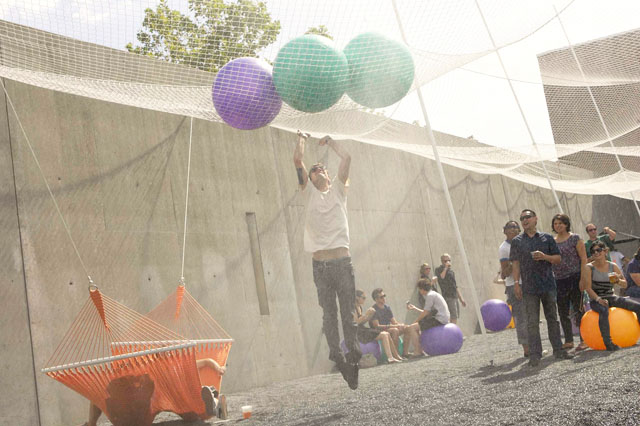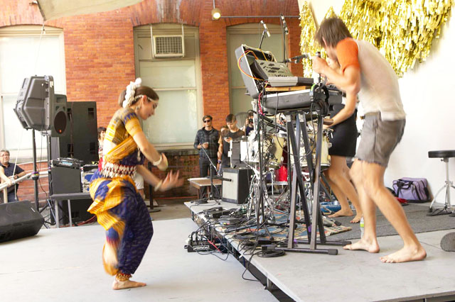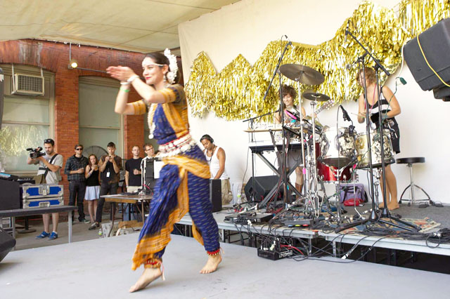 Avey Tare's got a solo LP out soon, Deakin is heading out on tour with Paw Tracks' Sanskrit-chanting psych troupe Prince Rama,  all three were on hand for Saturday's installment of the MoMA WarmUp. The Animal Collective duo and their label signees were DJing and performing, respectively, on a Triangle Records (with an AnCo assist from Brandon Stosuy) curated day at PS1, featuring heavy emphasis on various angles and densities of beat -- from the deep hypnotic work of Blondes and Oneohtrix Point Never to the more Warp-ed and dance realms of Babe Rainbow and CFCF. It was sunny, and temperate, and I almost got kicked out. Summer! Lots of photos of the day here by Bek Andersen.