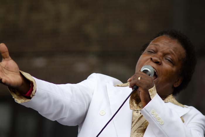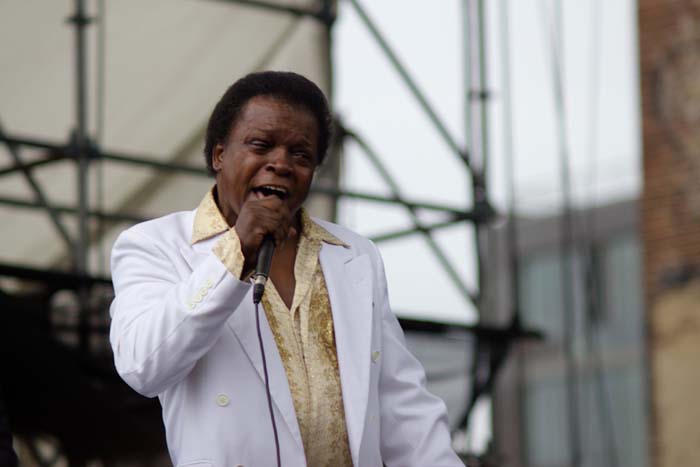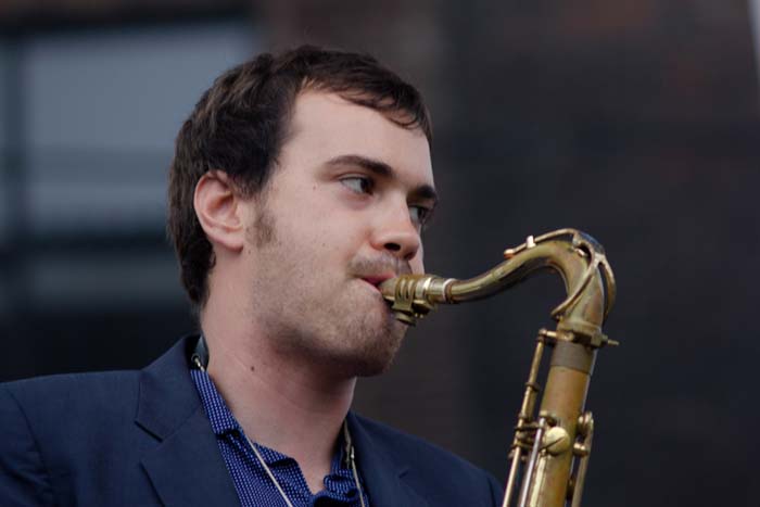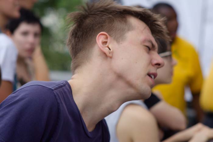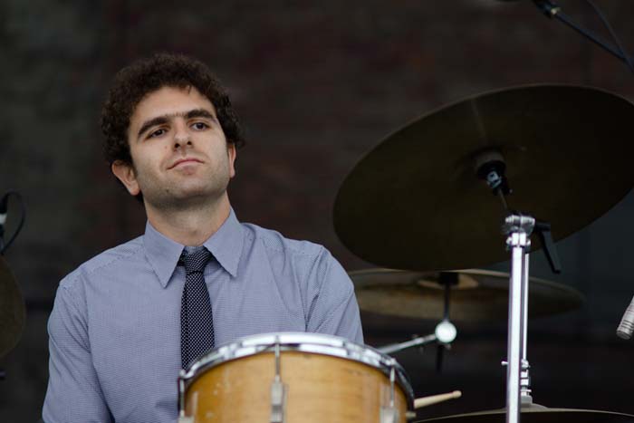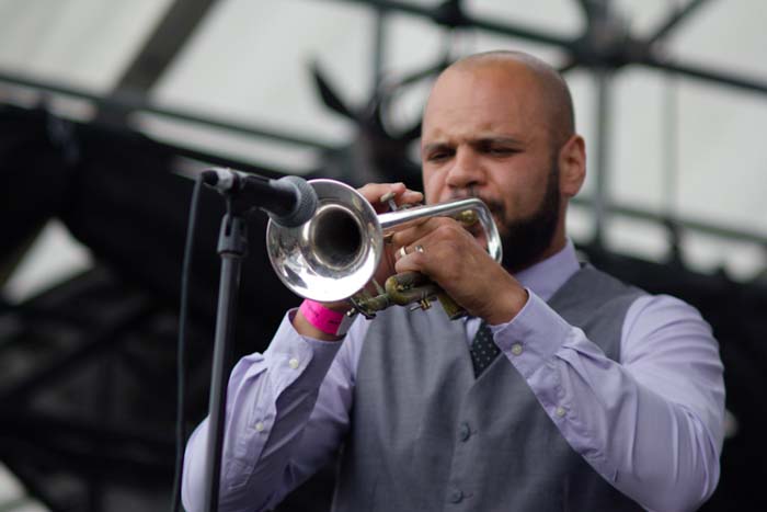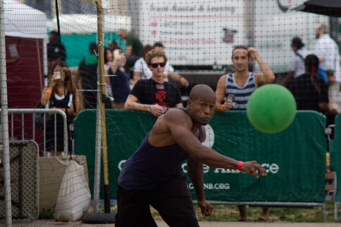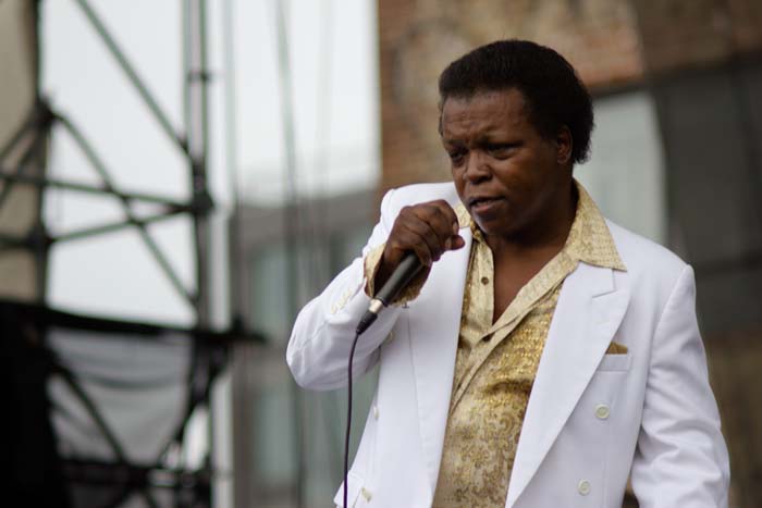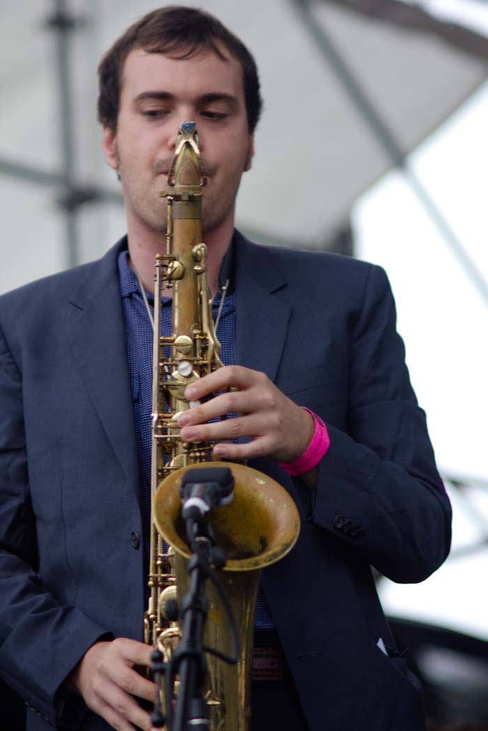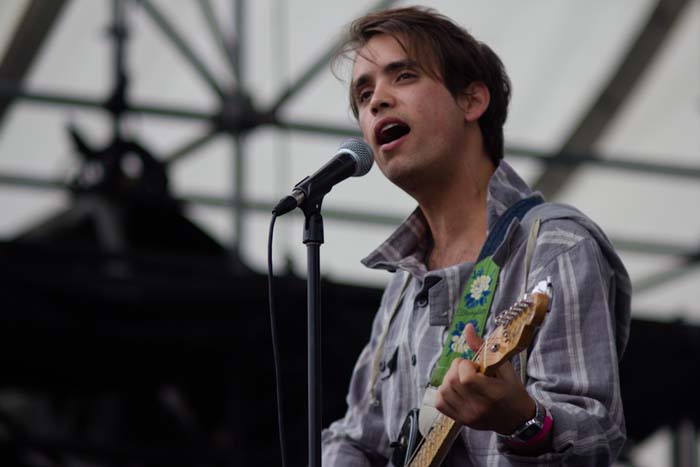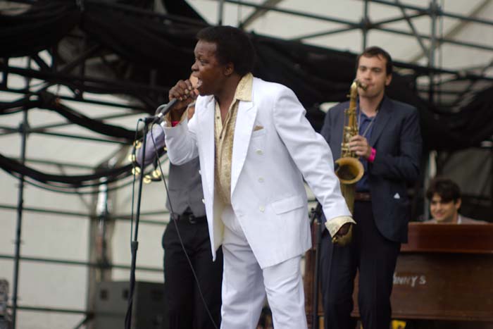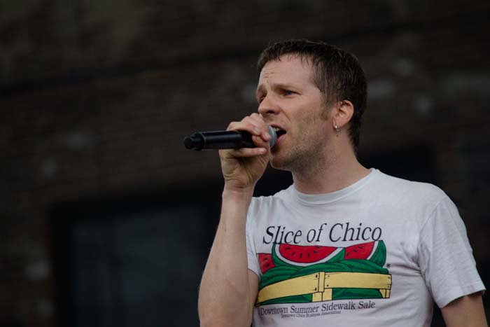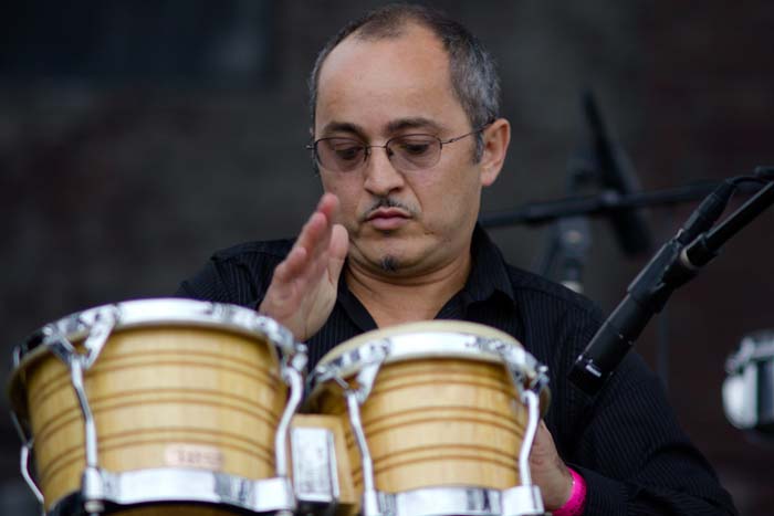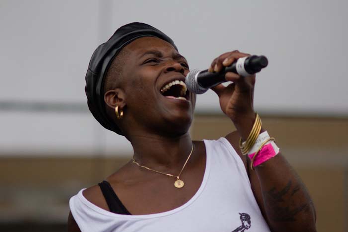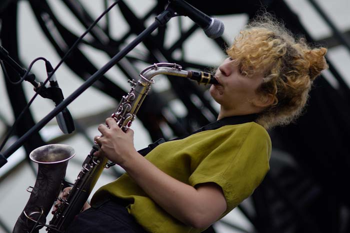 Strange weather, wasn't it for !!!'s free show down at the Williamsburg Waterfront on Sunday. Photographer Chris Person braved the ominous skies, intermittent rain, and the free rum lines at the VIP section at the adjacent All Saints Pub for this set of shots from the day.