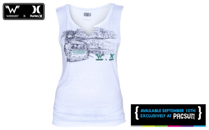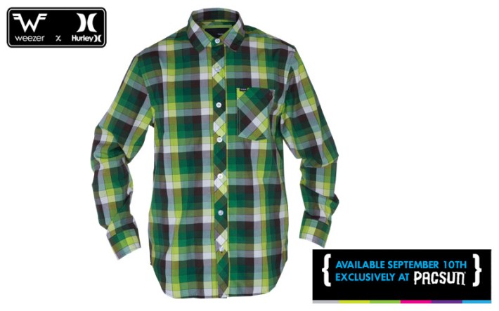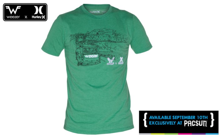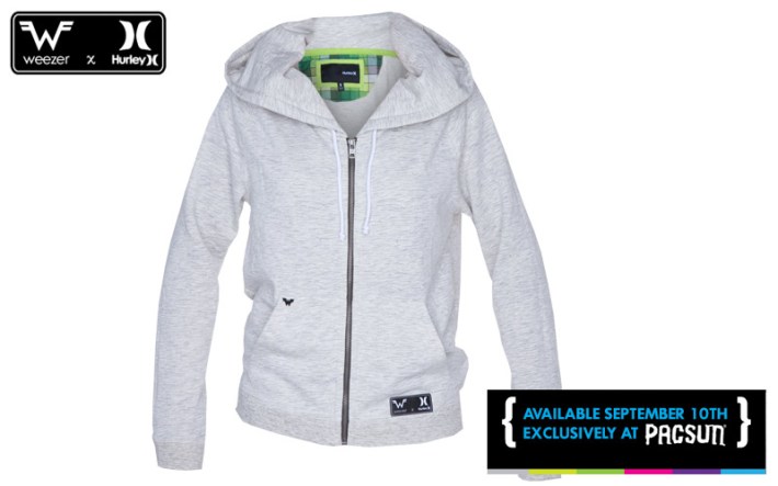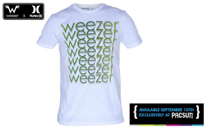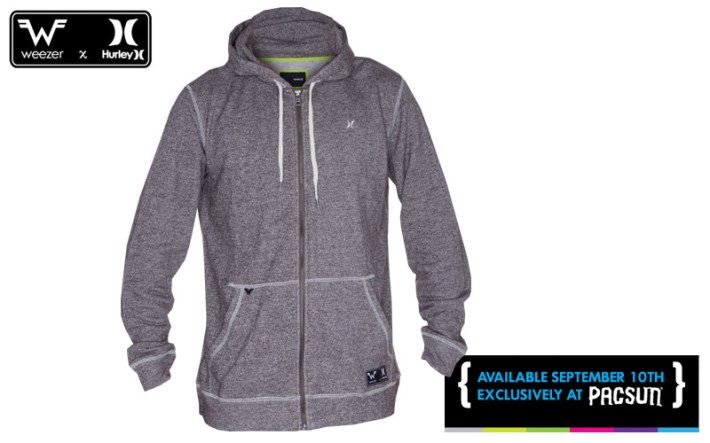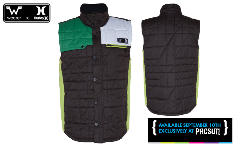 As mentioned, PacSun and Hurley (the clothing company) are teaming up to sell Hurley (the Weezer album) ahead of its September 13 release. According to PacSun, you and your best friends can buy the album inside PacSun starting this Friday. Also on sale? Limited edition Weezer clothing, as part of their partnership with Hurley (the clothing company). All the pieces come in shades of green, grey, and white, thought not all are explicitly "Weezer" items (as the press release says they're "Weezer-inspired"). Take, for example, the puffy vest below, which doesn't advertise your Weezer fandom as much as make you look like Rivers Cuomo: