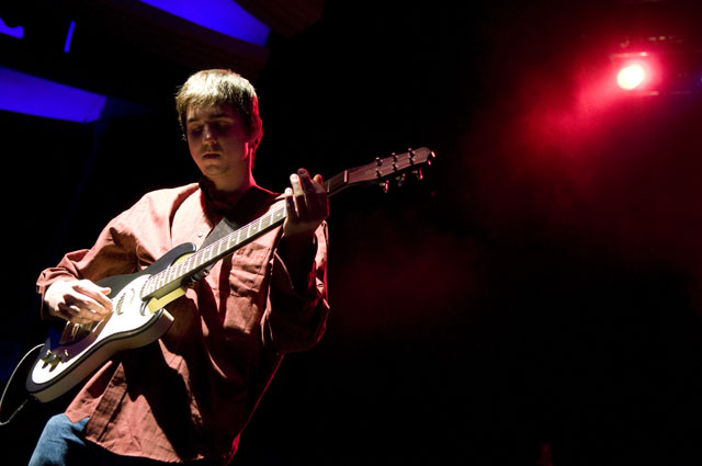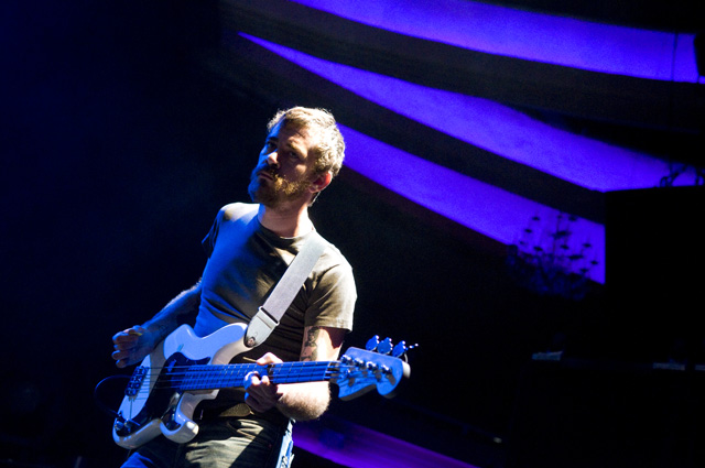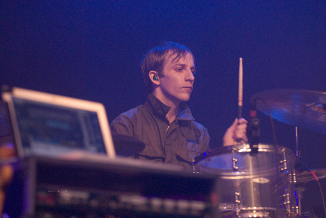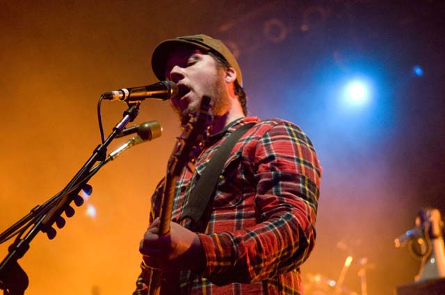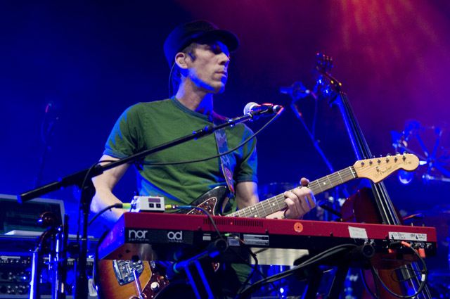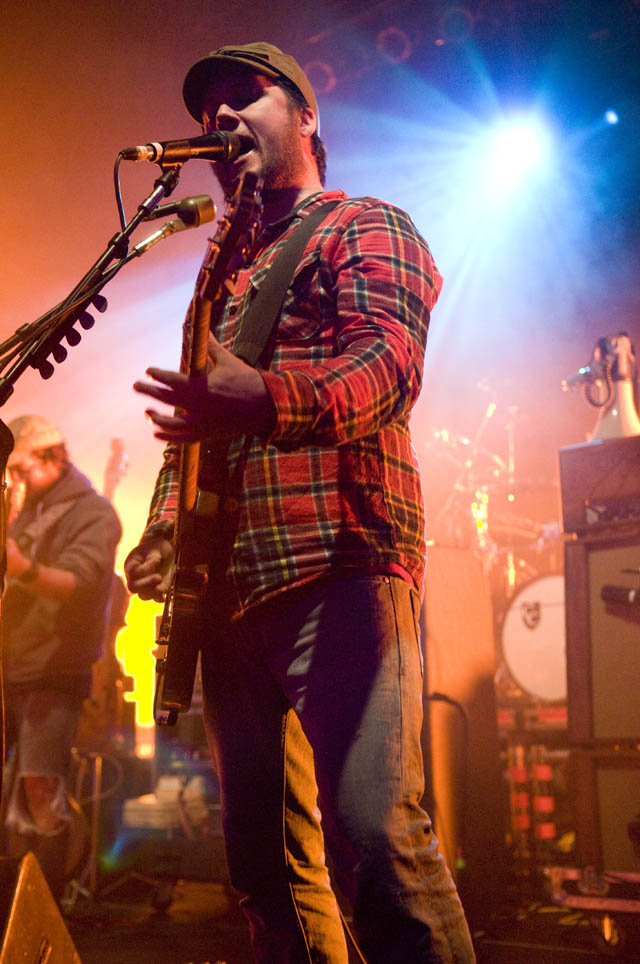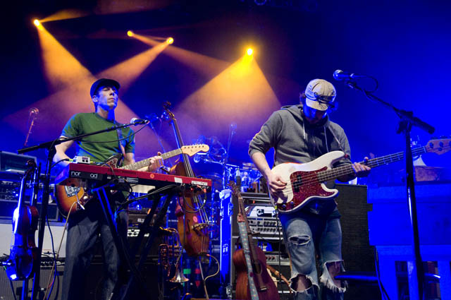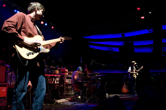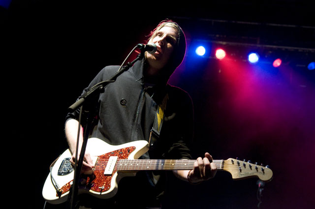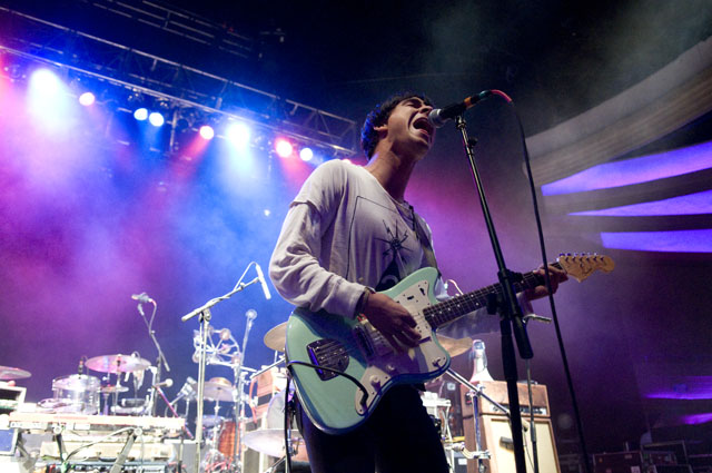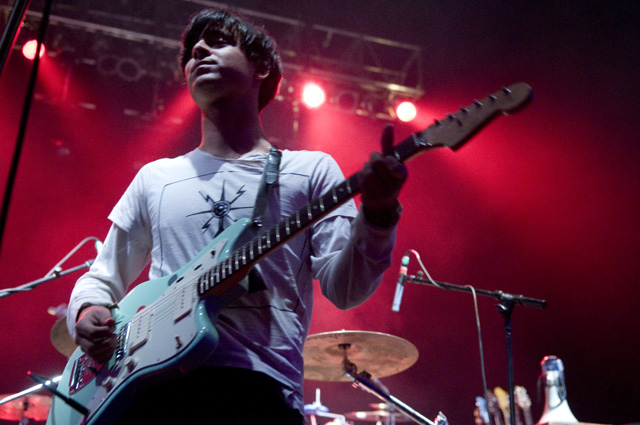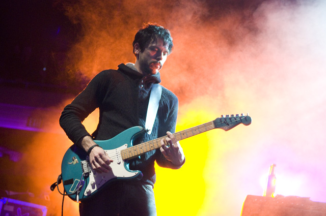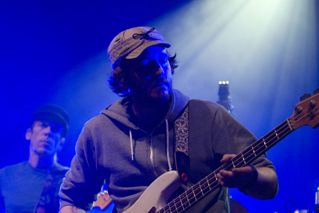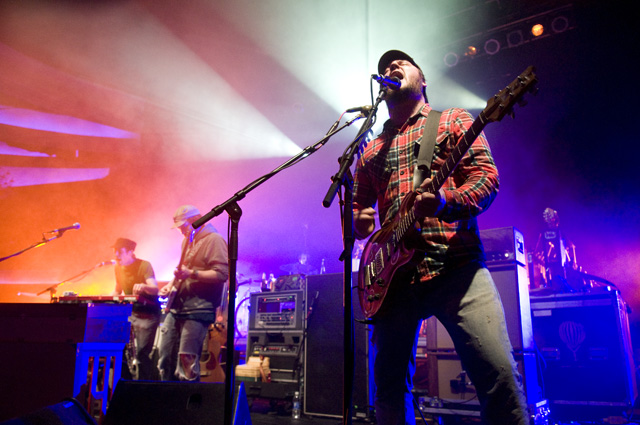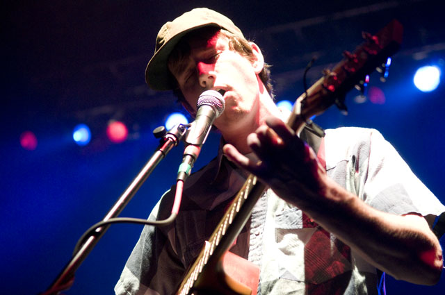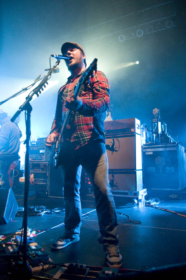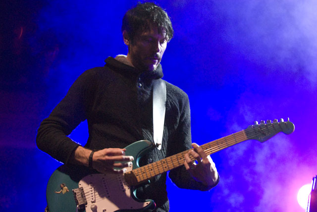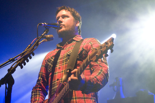 With Johnny Marr off turning his seasoned tricks for the Jarmans, Modest Mouse recruited ex-Grandaddy guitarist Jim Fairchild for this twelve date tour. Seems it was a good choice. These shows are being hailed as fiery and focused, which couldn't always be said about those Marr-dest Mouse sets. The list of songs touched each point on the discog (Lonesome's "Trailer Trash," four from The Moon..., two from This Is A Long Drive..., five from Good News), with only "Education" and "Dashboard" from We Were Dead..., all of which is good news for people who like bashing that latest record's direction. Also performed: new song "Satellite Skin." The tour wraps up in the first week of March; sounds like a good one for lovers of deep cuts. Joining Modest Mouse in this set of shots is openers Japanese Motors and Mimicking Birds, all by photog Andrew Youssef. The rest of this tour's dates and last night's setlist: