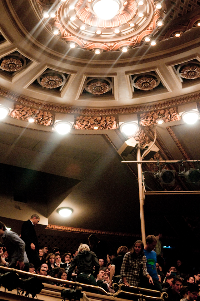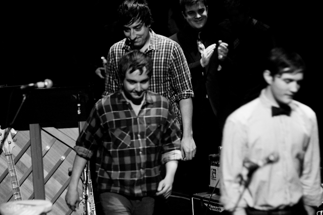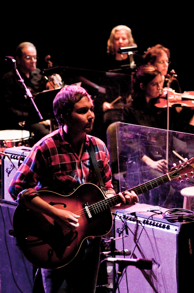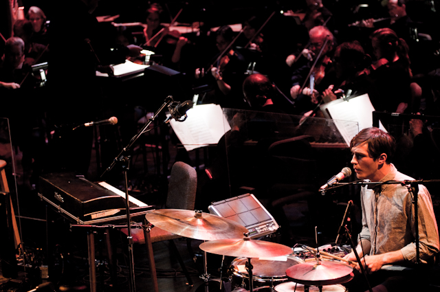 Well, that was wonderful. On Saturday night at the Brooklyn Academy Of Music, Final Fantasy and Grizzly Bear experimented with full sets of material accompanied by the Brooklyn Philharmonic. The results were masterful, obvs. Final Fantasy's material is inherently symphonic, so the orchestral interpretation was a natural step. For Yellow House, the reinterpretation was more of a leap, although really just as logical: that album's dynamic and harmonic richness was begging for a night like this.