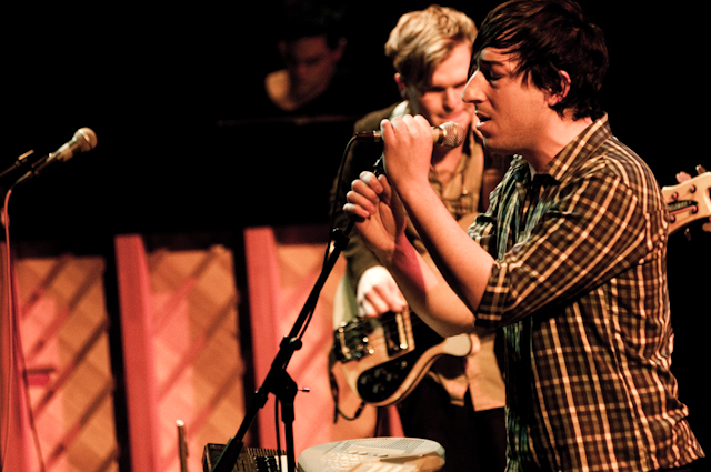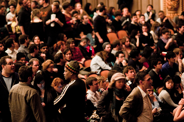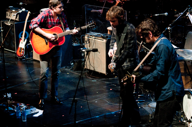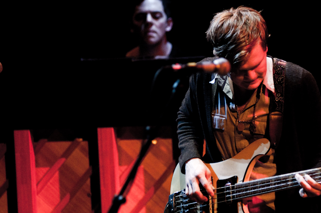 The list of songs Grizzly Bear had never performed live: "Central and Remote" (so good), "Plans," "Reprise," Horn Of Plenty's "Campfire," and three from Veckatimest: the subtly psychedlic, rousing and grooving victrola-era pop of "Ready, Able," the Yellow House-redolent, sepia-toned "Dory," and the set-closing, bittersweet and majestic torch-song "Foreground." Together they effectively fucked with the idea that this new album will be one big sunny pop jam, adding dimension to our expectations while heightening them. People brought recording equipment of the audio/visual variety. Dig in: