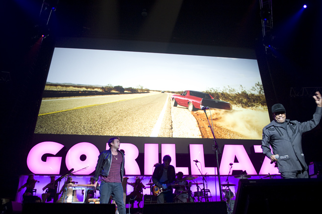 Gorillaz rolled down to San Diego to bring their multimedia and guest star extravaganza to the Viejas Arena. The fact that Mick Jones and Paul Simonon share the stage with Damon Albarn should be enough of a reason to catch this tour before Gorillaz goes back into hibernation.