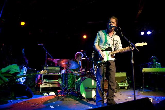 Fans turning up to Jenny Lewis's set at the Glass House last night received a special treat. It was not that BF Jonathan Rice came out on stage, because when is he not onstage with her, and it was not that they covered "Love Hurts" together, because they do that a bunch, too. (You can watch their rendition from Elvis Costello's Spectacle wrap party.) On the door a flyer announced a surprise screening of Welcome To Van Nuys, Jenny's forthcoming documentary on the recording Acid Tongue. Our photographer Andrew Youssef was there to shoot the scene and says it featured cameos from Jenny buddies Zooey Deschanel, Elvis Costello, and M. Ward, and mostly focused on studio footage and "making of" scenes. Van Nuys is where Acid Tongue was recorded. It's also Jenny's hometown. Now you know. In addition to the film, the Glass House hosted sets from Dawes and of course Ms. Lewis, who dedicated "Under The Blacklight" to her friend Blake and charmed her way through forgotten verses on "Rabbit Fur Coat." Next stop: Coachella. Last night's photos and upcoming tourdates: