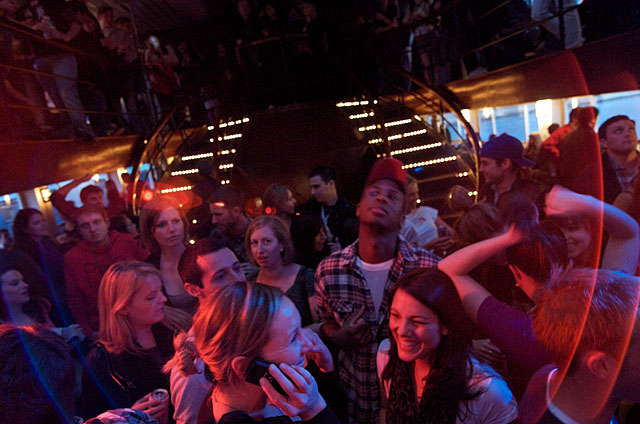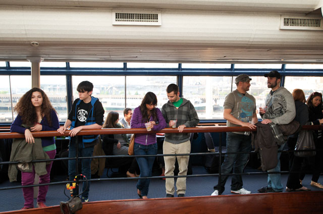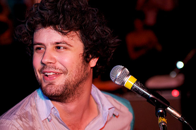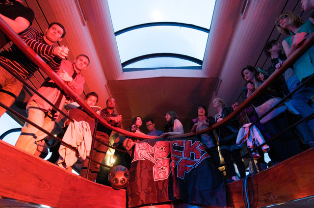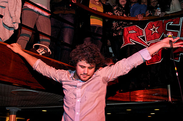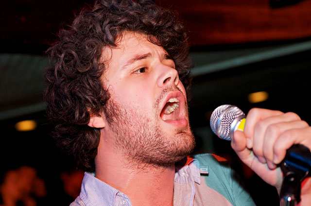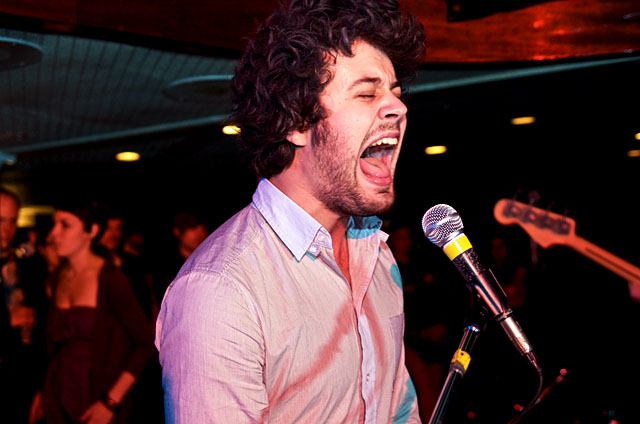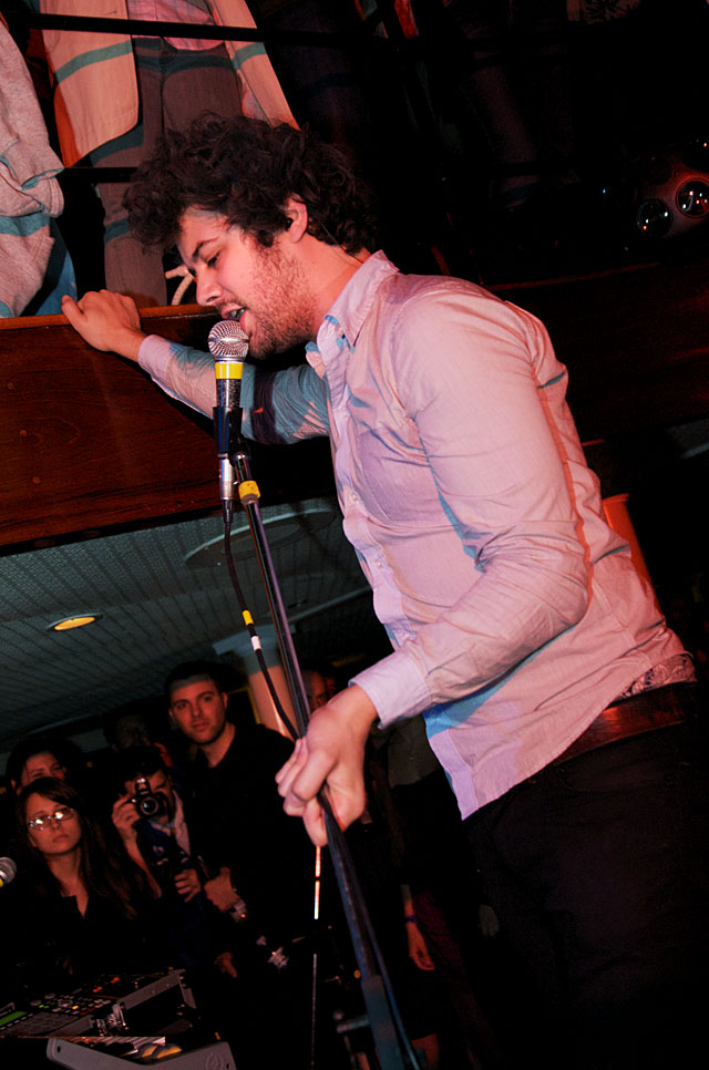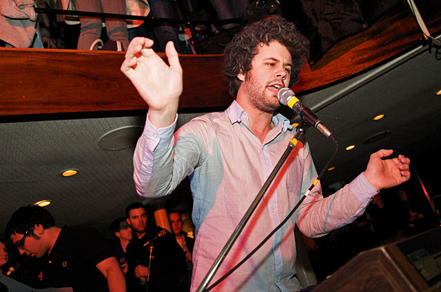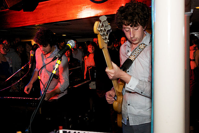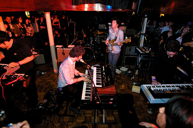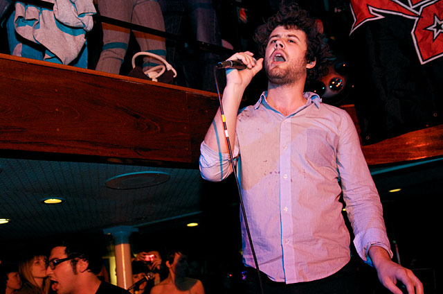 Last night Passion Pit celebrated their debut LP release by cruising New York Harbor on the Rocks Off boat cruise. Rest assured the event was thoroughly Tweeted. Fans boarded the Temptress yacht at 8PM for the three hour tour during which Cambridge's buzzy synth-pop revivalists entertained with Manners. According to our photographer Natasha Ryan, folks were dancing like crazy, which was probably not easy in this venue, but it wouldn't have been much of a party otherwise. Yesterday was also frontman's Michael Angelakos' 22nd birthday, so that's explains the cake all over his face towards the end of the photo set. No word if he managed to fuck a mermaid.
