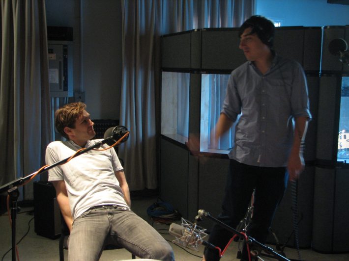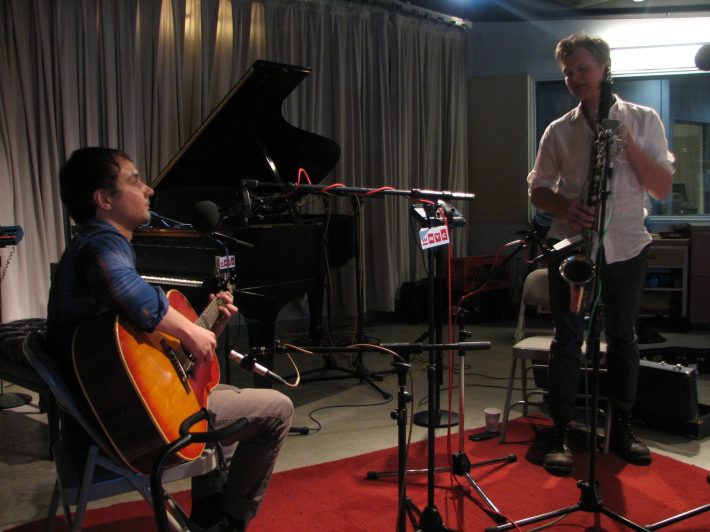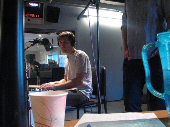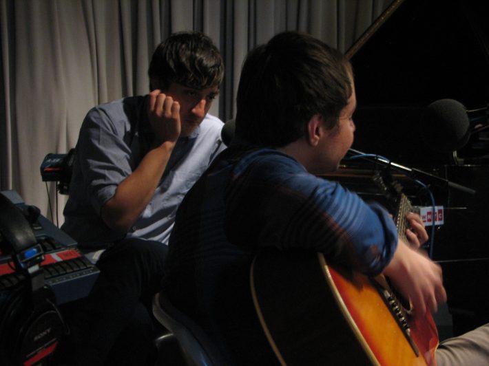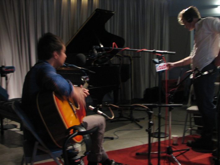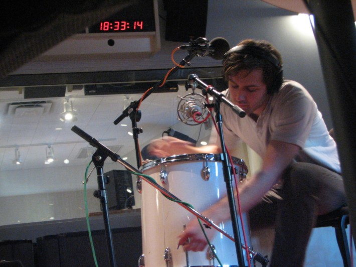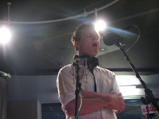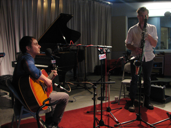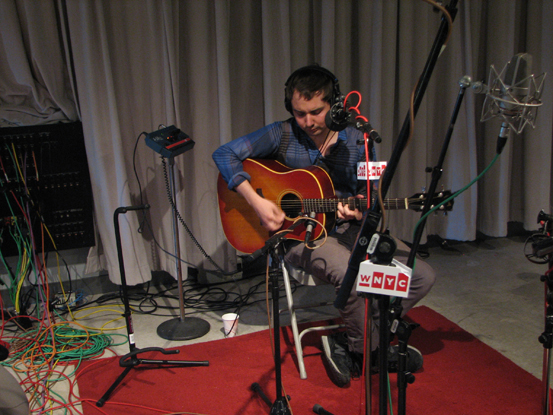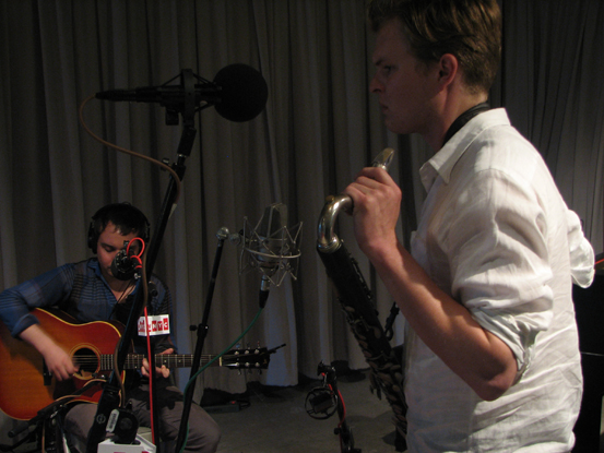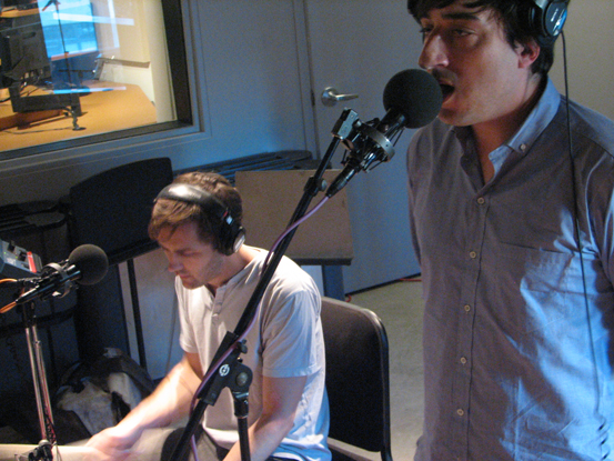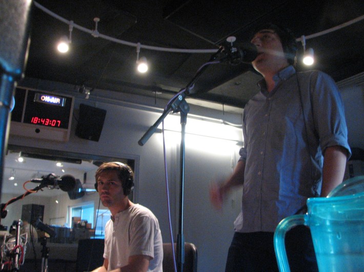 The band played a short acoustic set for WNYC last night and host David Garland sent us the photos from it that accompany this post. Here's how "Two Weeks" sounded with piano instead of omnichord: