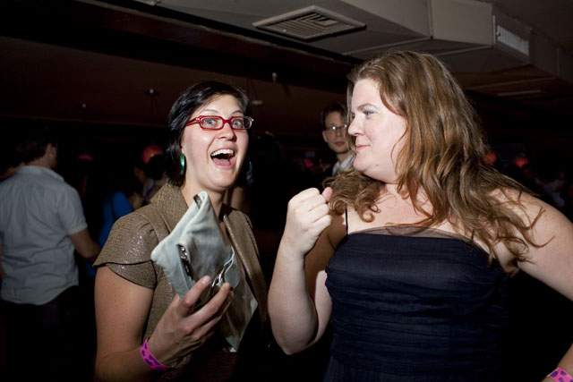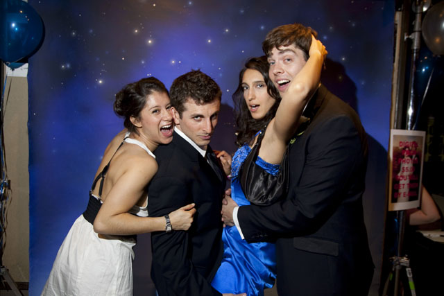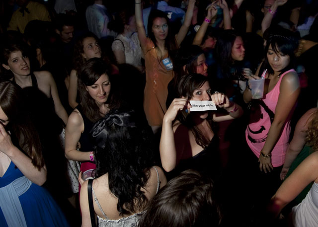 Prom Season -- and its promise of rented limos, expensive gowns you'll never wear again, and desperate hookup attempts -- is upon us.Many of you probably didn't go to prom because fuck high school! But what if there was an ironic prom with DJ sets by members Vampire Weekend, LCD Soundsystem, and Hercules & Love Affair, emceed by comedian Leo Allen? Would you go to that? Too late, it happened last night. The event benefited 826NYC, the nonprofit that tutors kids in the back of a superhero supply store, so if that's not a good reason to slow dance to "Open Arms" I don't know what is. We sent Zach Dilgard to capture the festivities for posterity. One day some of these haircuts will look (even more) ridiculous.
