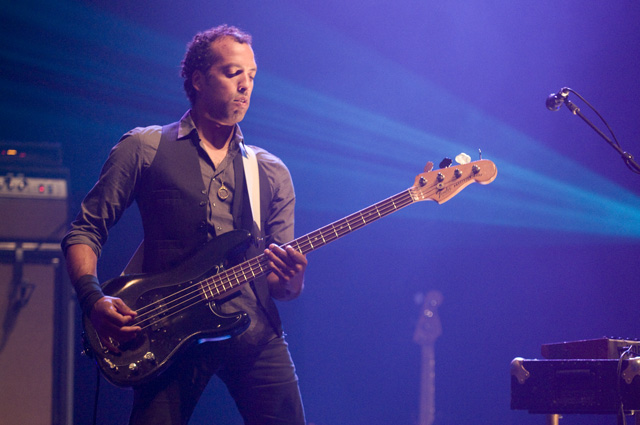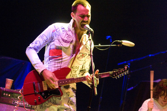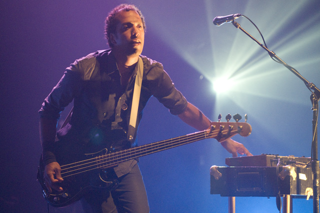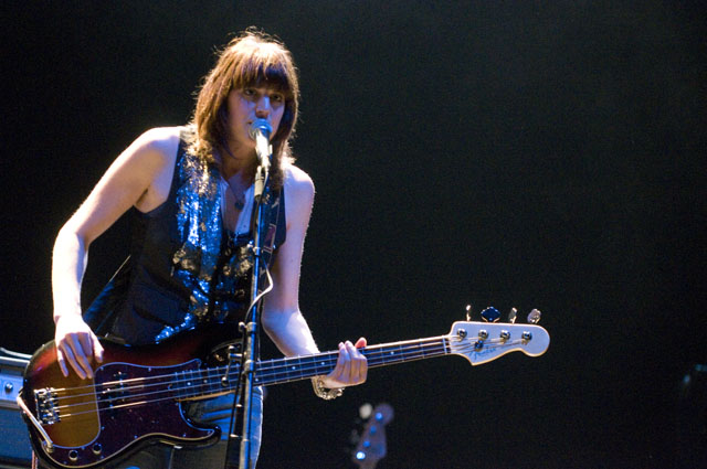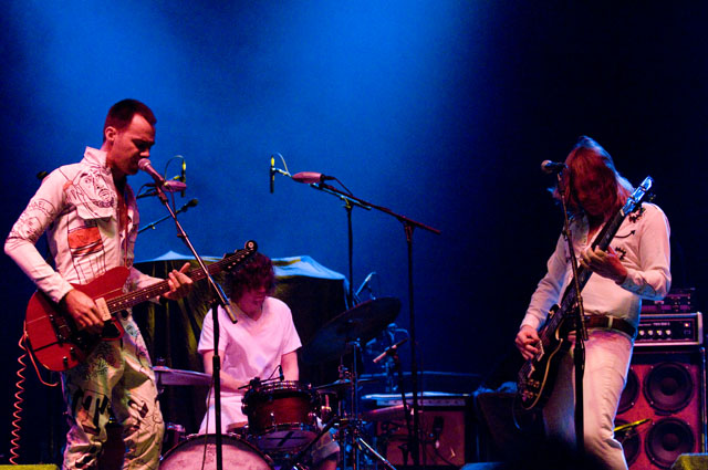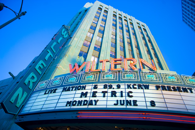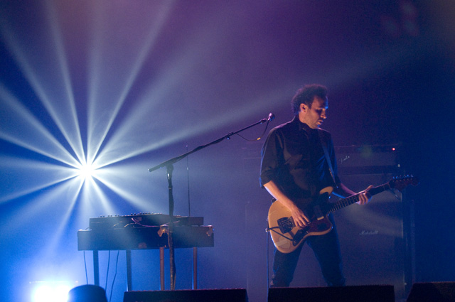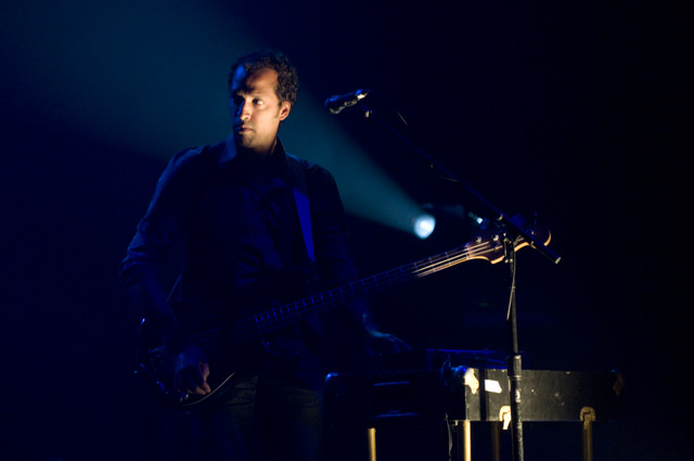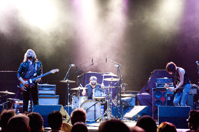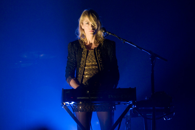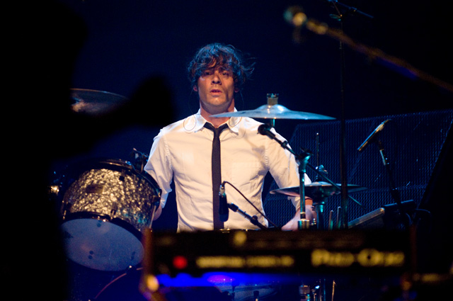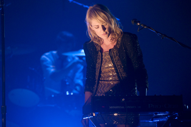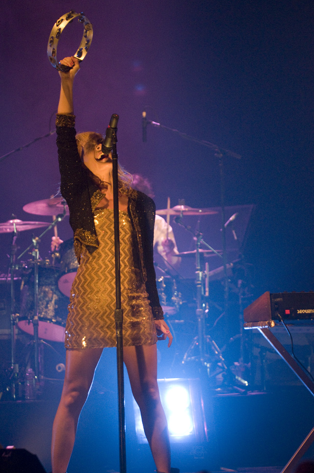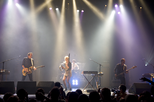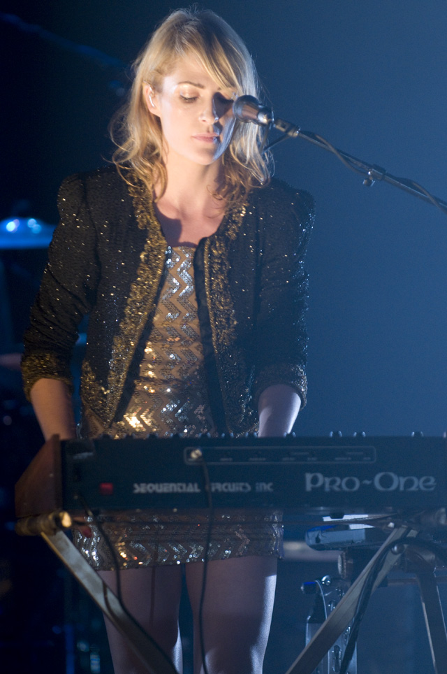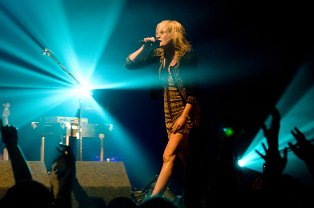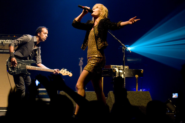 Metric's tour on the back of Fantasies and its many videos brought them to L.A. last night, where the band played their biggest, most sold-out show yet. Props were paid onstage to the various Los Angeles venues they've performed and outgrown along the way -- Silverlake Lounge, El Rey Theater, Henry Fonda Theater. It's a good stage-banter device, simultaneously inviting, humbling, and self-congratulatory; it's also one that their BSS-mate Feist loves whipping out whenever she's in NYC (like at Town Hall and McCarren last year). Anyway the crowd ate it and their set up last night, including a theremin-ed "Twilight Galaxy," the "summer jam" "Gimme Sympathy," and the "Monster Hospital"/"Live It Out" encore. Opening the show was the non-MSTRKRFT half of DFA1979, Sebastien Grainger and his Mountains, along with Band Of Skulls, who our photographer Andrew Youssef tells us have been playing a slate of L.A. showcases over the past week. A few more chances to see Metric remain: