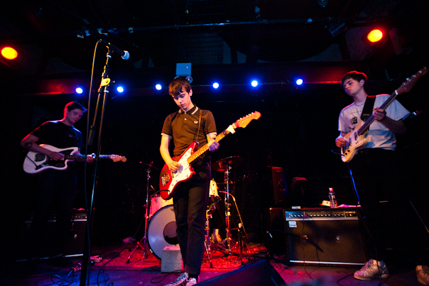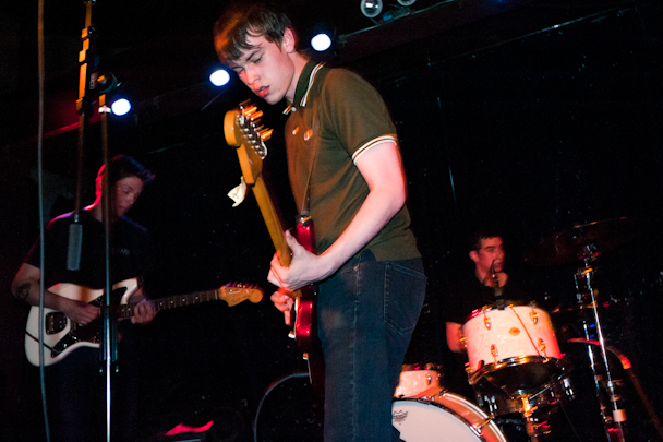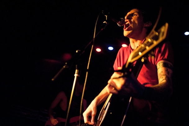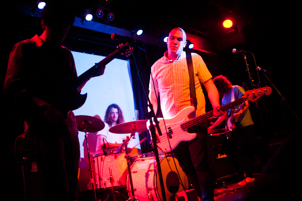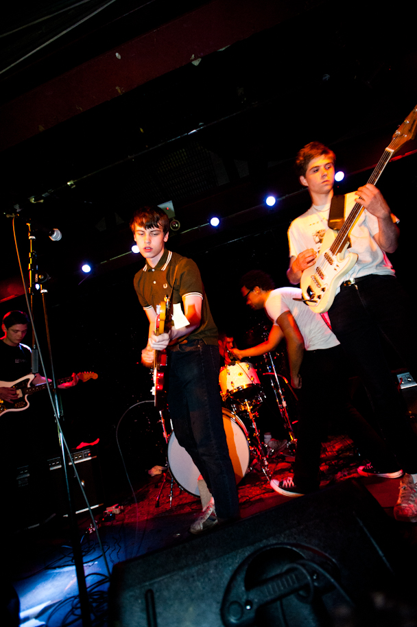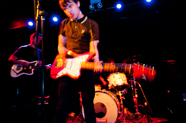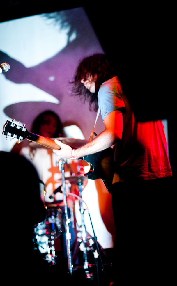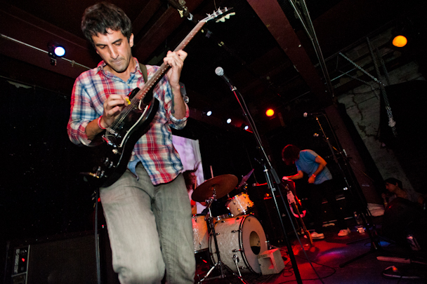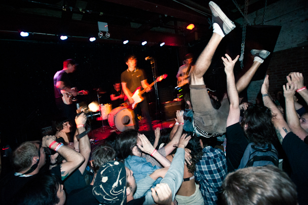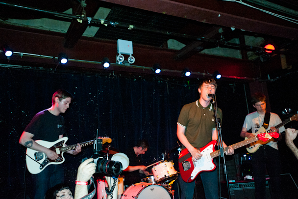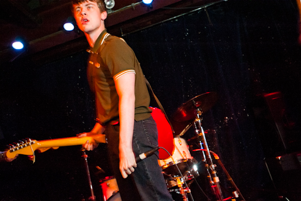It's been bubbling awhile, but the anticipation for Iceage's sold-out American live debut boiled-over in the weeks leading up to the Stereogum/Sacred Bones Northside Showcase at Public Assembly. The underground excitement for co-headliner Prurient is always there -- especially considering Friday's set was his first in 2 years -- but excitement was also ratcheted up recently with the announcement of a new album Bermuda Drain and a new direction. Both delivered: If you left disappointed at 2AM, it's because you couldn't get into the venue. The Danish teens offered exactly what they needed to via a an expertly sloppy/angry/cynical/nervous/cocky/unhinged/buttoned-down 20-minute set crammed with New Brigade highlights and an appropriately punk, anti-climactic into-the-crowd exit. (As I said before SXSW, Iceage are my Odd Future.) The more experienced Dominick Fernow, joined by Cold Cave bandmate Wes Eisold, followed Iceage with exceedingly precise power-electronic catharsis -- it was violent, crisp, spastic, and, as mentioned, romantic. Sure, he wears a nice leather jacket now instead of ripping off his shirt like the old days and the Bermuda Drain material can be full-on danceable, but you won't find a more compelling or uncompromising noisemaker -- anywhere. I could go on about both sets for pages, but Ryan Muir's photos are more interesting: In addition to Iceage and Prurient, he snapped pictures of BTW Cult Of Youth and The Men, whose Leave Home is a surprise favorite of 2011. We also have video clips of Iceage (note audience response to "New Brigade," "You're Blessed," etc.) and Prurient's "A Meal Can Be Made" shot by Todd Pendu of Pendu NYC.