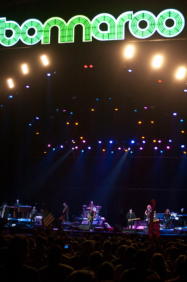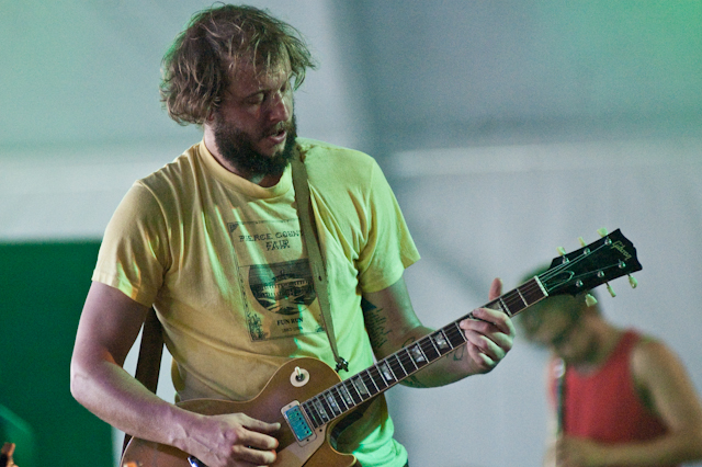 Sets from Jimmy Buffet and Bruce Springsteen bookended a day of mellow, familiar dadrock with more mass appeal than the inscrutable indie pop that dominated Friday. Backed by Elvis Perkins In Dearland, the ever humble Bon Iver followed Robyn Hitchcock And The Venus 3 under This Tent in the afternoon. It was unbearably sweaty, and Justin tried admirably to distract us with a cover of Yo La Tengo's "I Feel Like Going Home" while a few Decemberists and Dirty Projectors looked on. The even-bigger-than-you-realize troubadour wrapped up with his customary request for audience participation in a singalong of "The Wolves (Act I & II)." Afterward we heard all the people talking about how Bon Iver's set made them cry. Meanwhile on the Which Stage, the Drive-By Truckers were tearing it up with Booker T. Jones on cuts from the legendary soul man's recent solo LP, DB-T faves like "Let There Be Rock," and an Outkast cover (guess which).