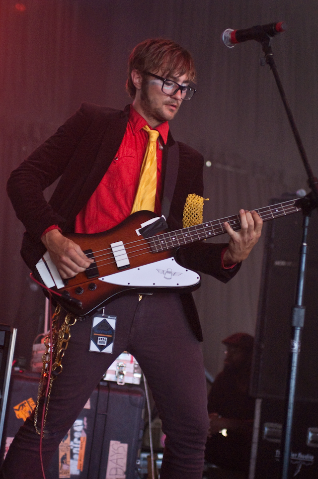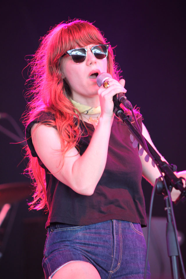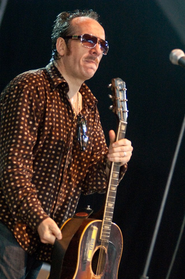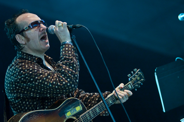 Jenny Lewis, in high waisted short shorts (always), strummed and smiled and imparted wisdom ("You are what you love and I love you") in between twangy solo tunes like "See Fernando" and "Jack Killed Mom." On deck was her BFF Elvis Costello in a leather jacket, purple fedora, and multiple scarves. (Dude didn't get the memo that it's a million degrees?) The genre-hopping pop statesman is currently supporting a sleepy Starbucks-distributed country LP, so the performance's curiously specific billing -- "Elvis Costello Solo" -- was not promising. Turns out Elvis actually came to please. He opened with three of his oldest hits ("(The Angles Wanna Wear My) Red Shoes" > "Watching The Detectives" > "Radio Radio") and closed with a roaring "(What's So Funny 'Bout) Peace, Love, And Understanding" backed by Jenny Lewis and band. Over on the What Stage, fest vets Wilco sounded tight on tracks new ("Wilco (The Song)," "Bull Black Nova") and old ("I Am Trying To Break Your Heart," "Company In My Back"). "Impossible Germany," with its gorgeous crisscrossing guitar harmonies, was a highlight as always.