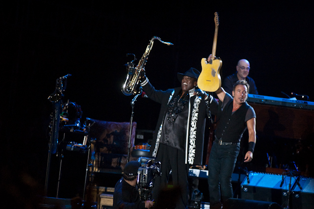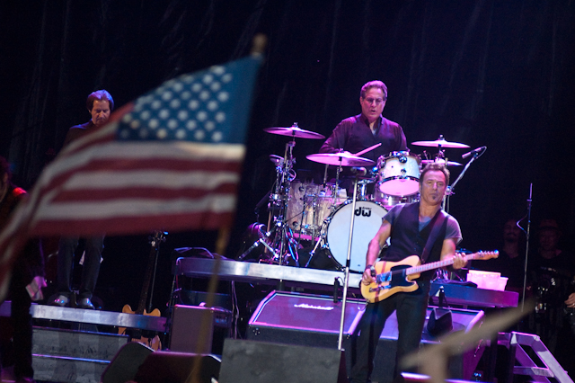 The Decemberists got a late start on the evening's final tent set, partially because of Montreal (who also started late) left a feathery mess in their wake, possibly because they were playing Dungeons & Dragons backstage. Polarizing prog opera Hazards Of Love ultimately played to the least crowded tent we'd seen all weekend, but the players' lockstep musicianship along with the Diamond ladies' dramatic vocal delivery made for a compelling performance. Alternatively, last chance to nap before the Boss.