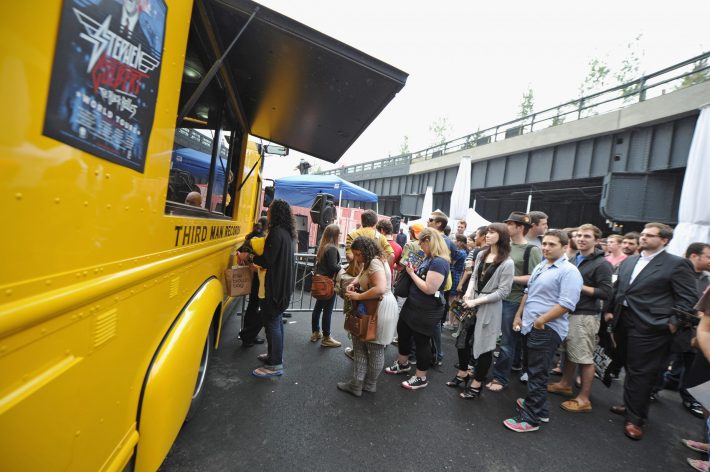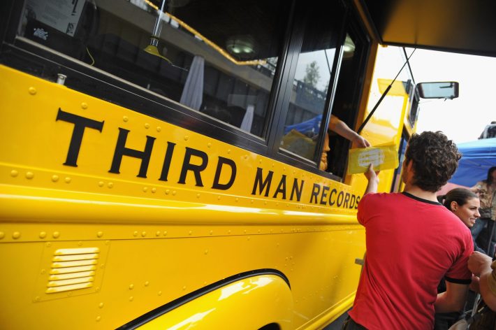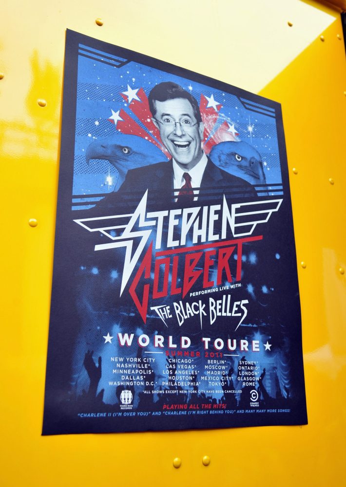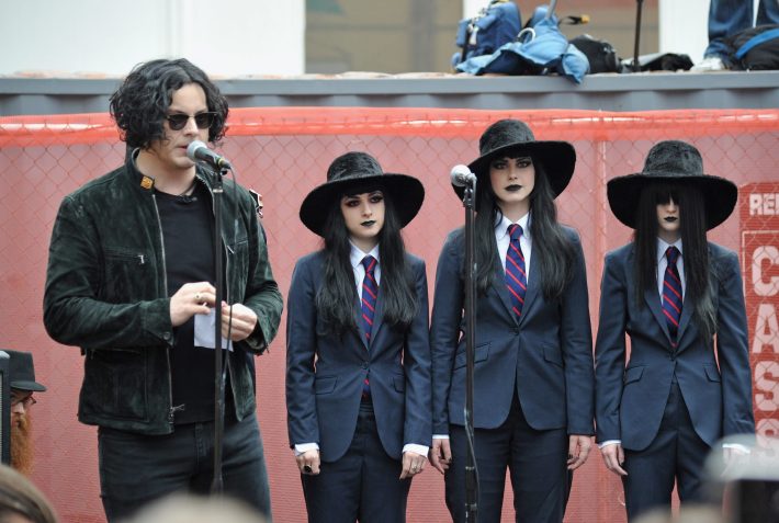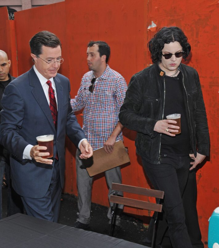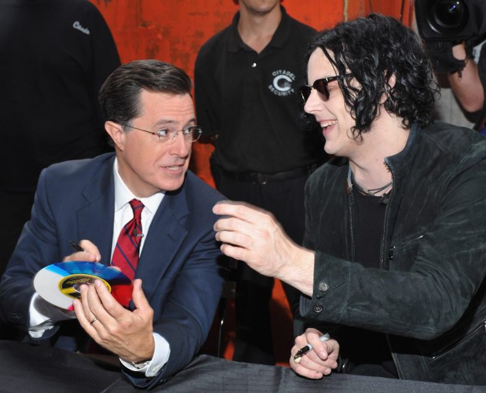 Third Man Records and its label boss Jack White rolled into NYC's High Line this morning for the first public performance of Stephen Colbert & The Black Belles' imminent hit single "Charlene II (I'm Over You)." The 7" also went on sale at the site and Jack and Stephen signed copies for lucky fans. Check out some photos from the event above and fan-shot video of the supergroup below. Watch (or re-watch) all of Jack's appearances on this week's Dr Pepper Presents StePhest Colbchella ’011: Rock You Like a Thirst-icane here.
