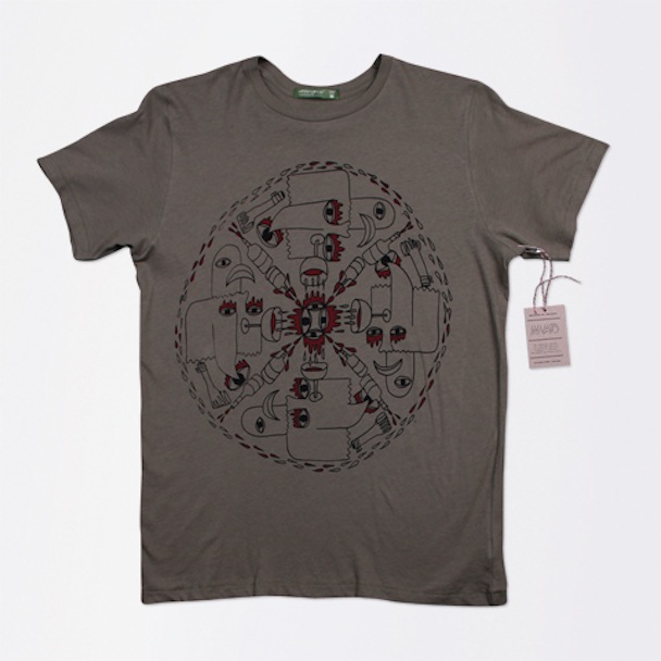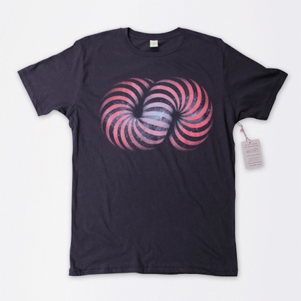 Soundscreen Design is an apparel/product design company closely aligned to music. As they put it, "We design, produce, and distribute music-related products ... [aiming] to advance the concept of music merchandise through meticulous design coupled with a fan's appreciation for and obsession with the 'thing.'" One of their most recent products, the 15th in their Musician As Designer Collection, is a t-shirt designed by Jamie Stewart (see above). It's available in an edition of 60 featuring Stewart's original illustration screen-printed (with three water-based inks) on an organic tee. Like the other shirt designs, they printed custom hang tags and hand-numbered each shirt. They don't only make shirts designed by musicians -- there are also totes and shirts they did themselves. To celebrate the release of the Stewart shirt, we're offering one winner a chance to any five items from Soundscreen Design's current Collection Stock below, from the Musician As Designer Collection and otherwise. The winner chooses from the items below: