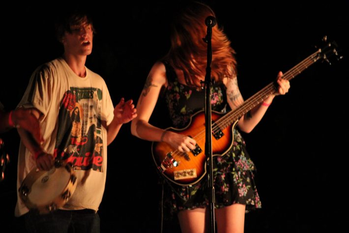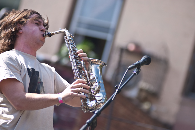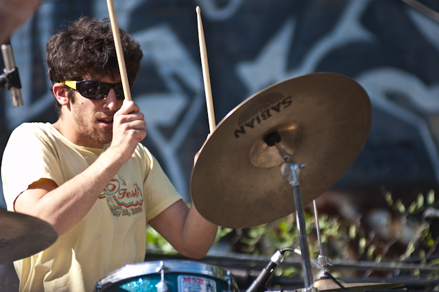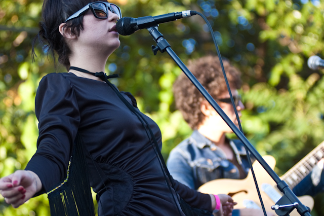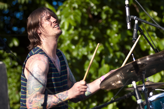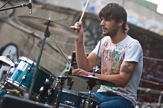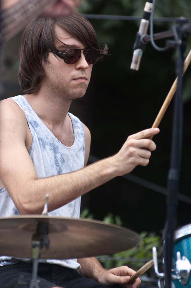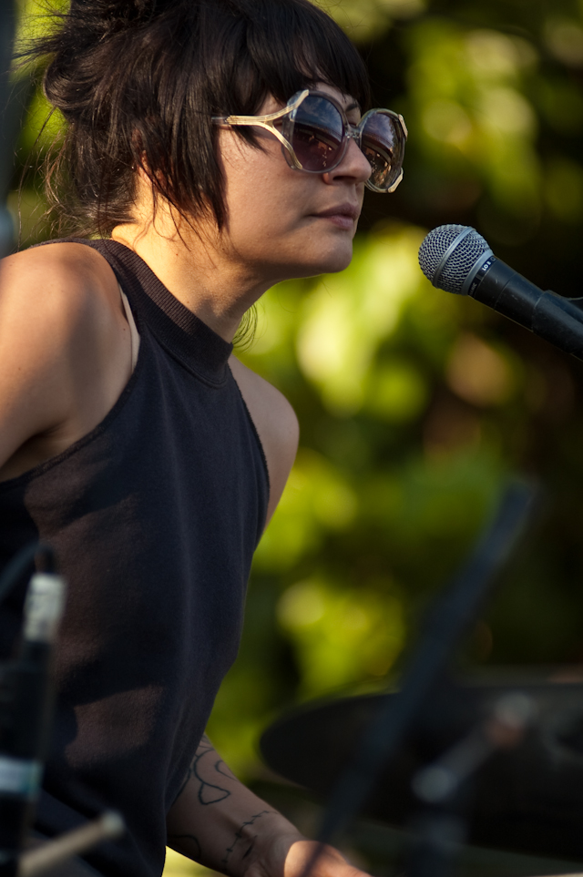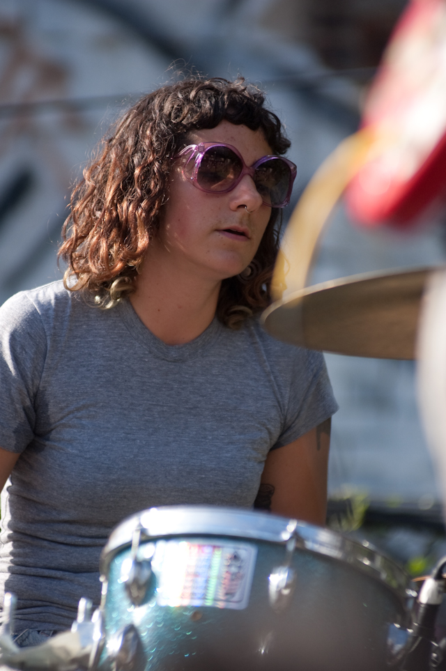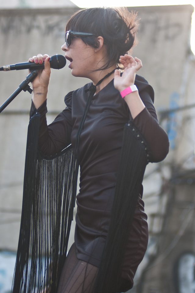 No festival would be complete without a superjam, of course, and Saturday's came via the scene's own little supergroup in Dum Dum Girls. Joining a black-fringed Dee Dee was Blank Dogs' (and Captured Tracks honcho) Mike Sniper on bass, Crocodiles' Brandon Welchez on guitar and massive beer, and Crystal Stilts Frankie Rose (seated for the occasion) on drums. It looked and sounded like this:
