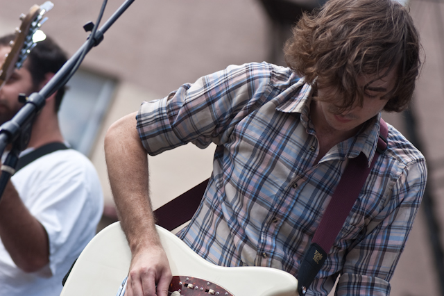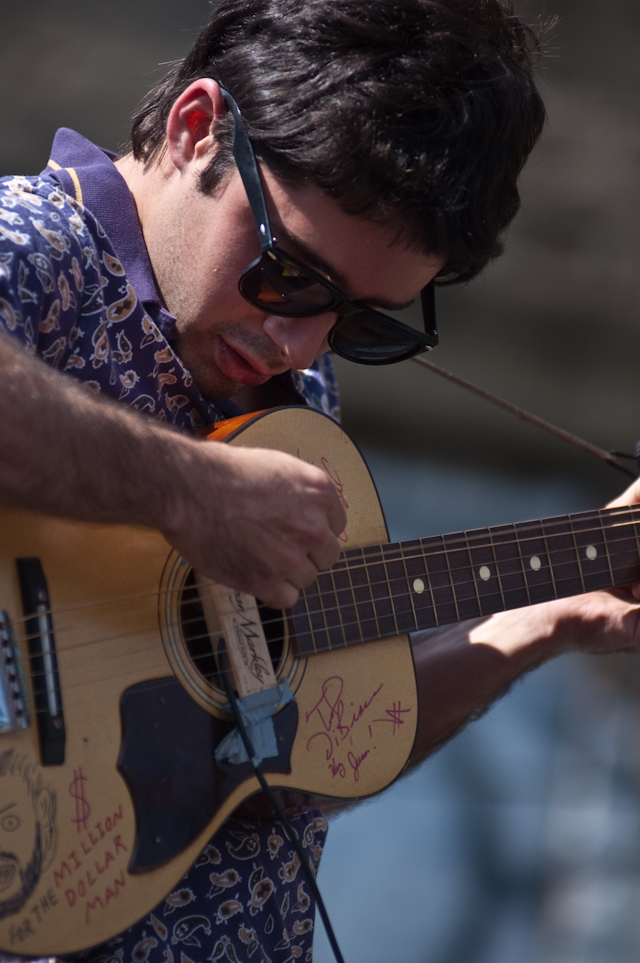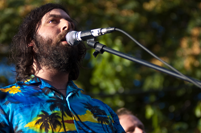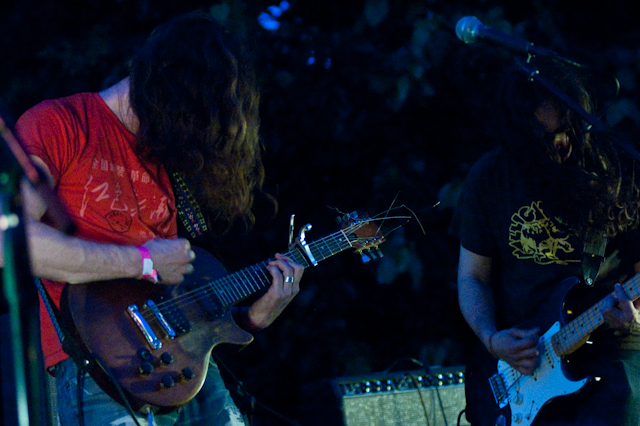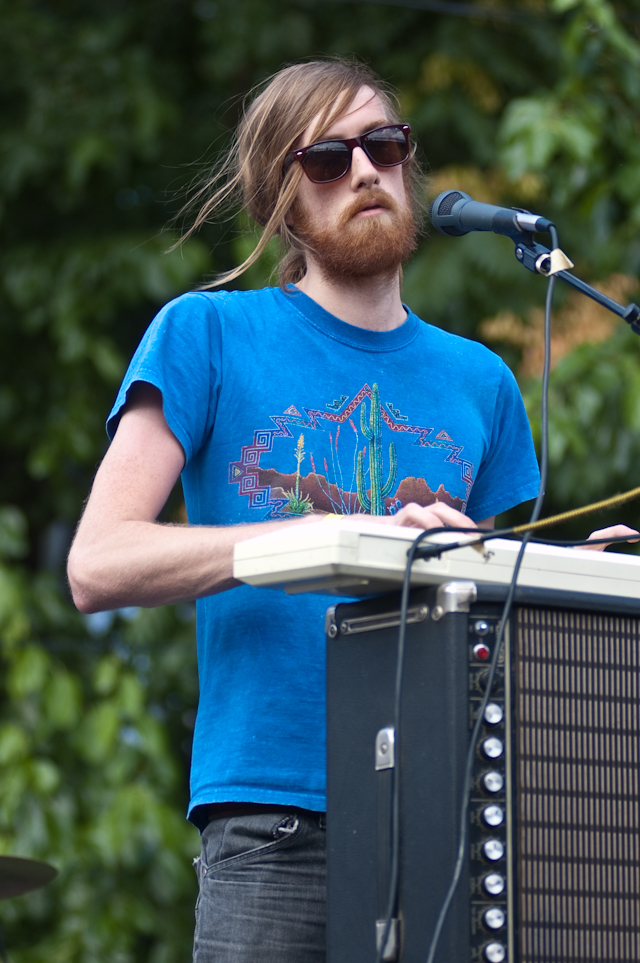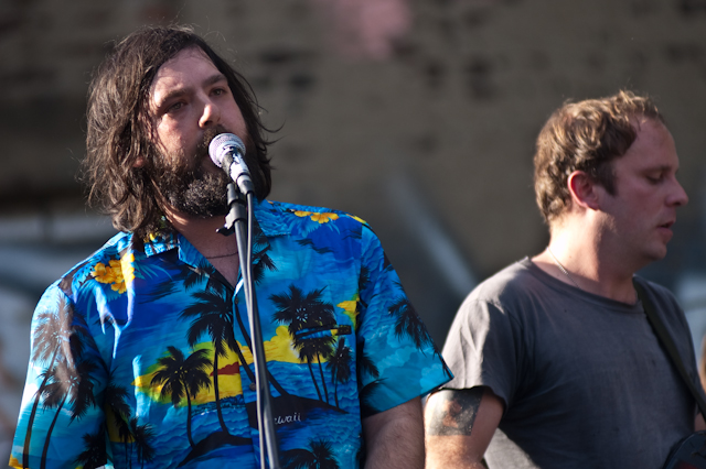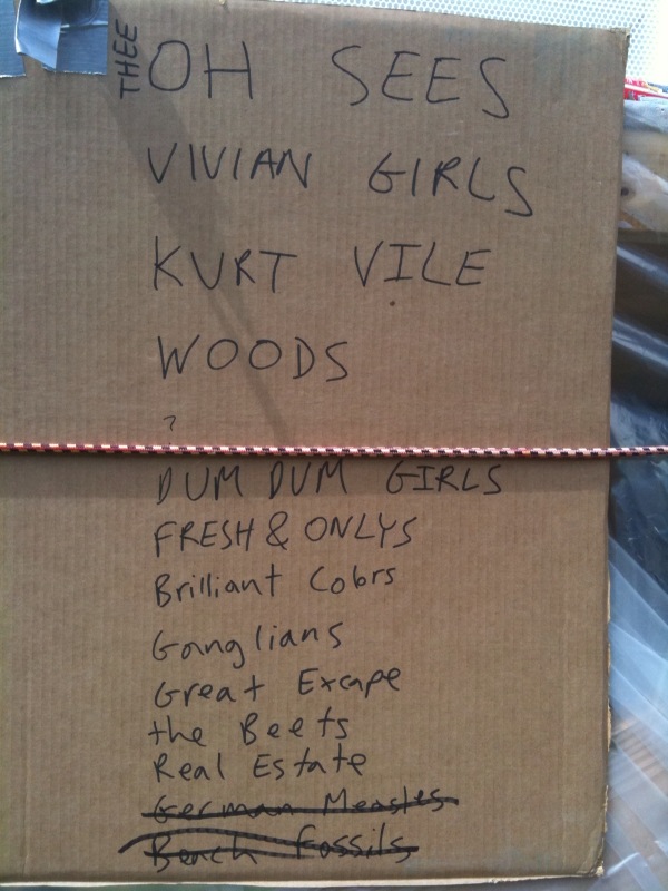 More so than your average music festival, where you can expect a different aesthetic with every band, the resoundingly lo-fi Woodsist/Captured Tracks fest was a fun one to analyze the interstitial house music. Two to note: 1) Grateful Dead. Awesome, and at first surprising, but ultimately not without its place: not after hearing Woods and Real Estate stretch their fuzzed and echoed melodies into considerably wanky but compelling instrumental jams, and not after hearing the San Francisco psych-pop presented by The Fresh & Onlys. And 2) Guided By Voices. I mean, obviously. The godfathers. It would be blasphemous not to. Hearing "Tractor Rape Chain" sparked as much conversation as hearing "Eyes Of The World", the GBV gist being: There's lo-fi scuzz as a costume, or borne out of production necessity, but in the end as with any "sound," it's about the songs. Pollard had the songs.