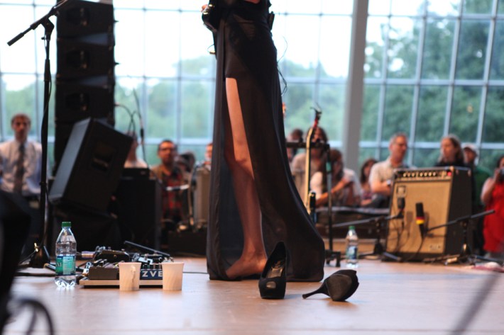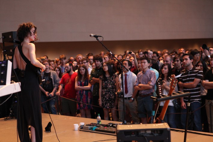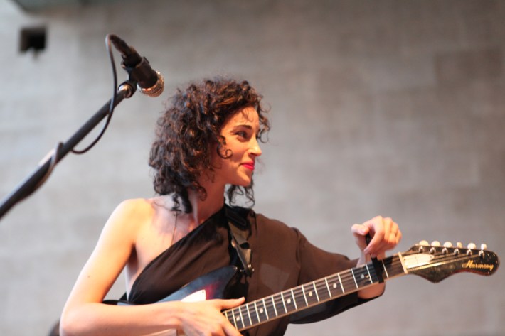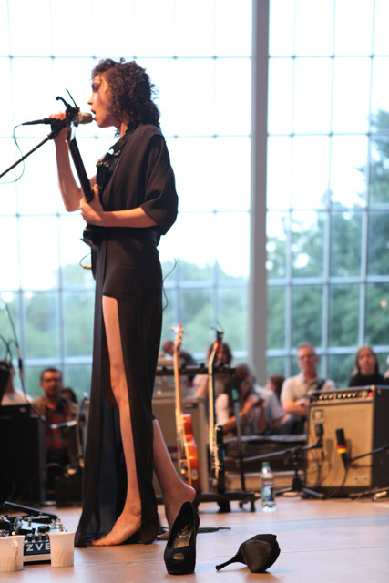 Before the performance, I was under the impression that the concert would be a run-through of St. Vincent's entire new album, Strange Mercy, coming out September 13th on 4AD records. I don't know why I was under that impression? But, whatever, in any case it was NOT a run-through of the entire new album. It was just a few songs from the new album and then also a few old songs. BUT THEY WERE ALL GREAT! But I'm getting ahead of myself. Let's relax for a second.