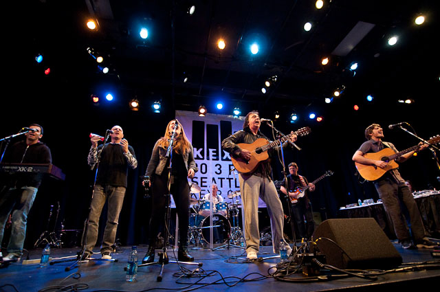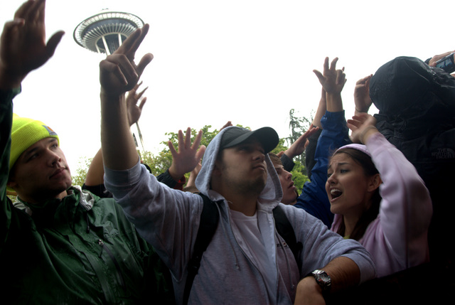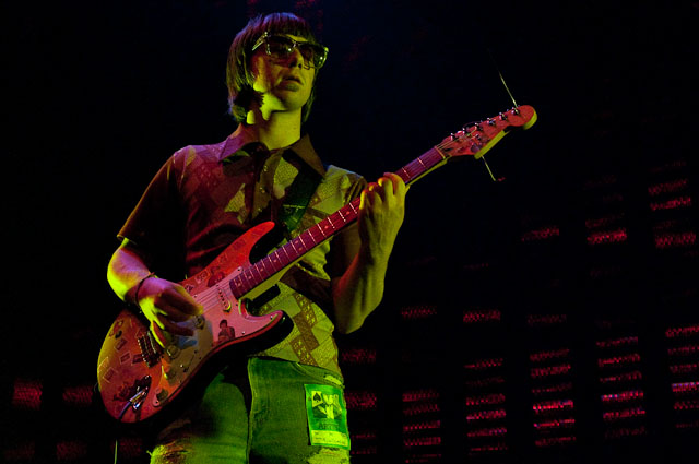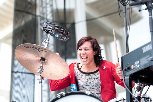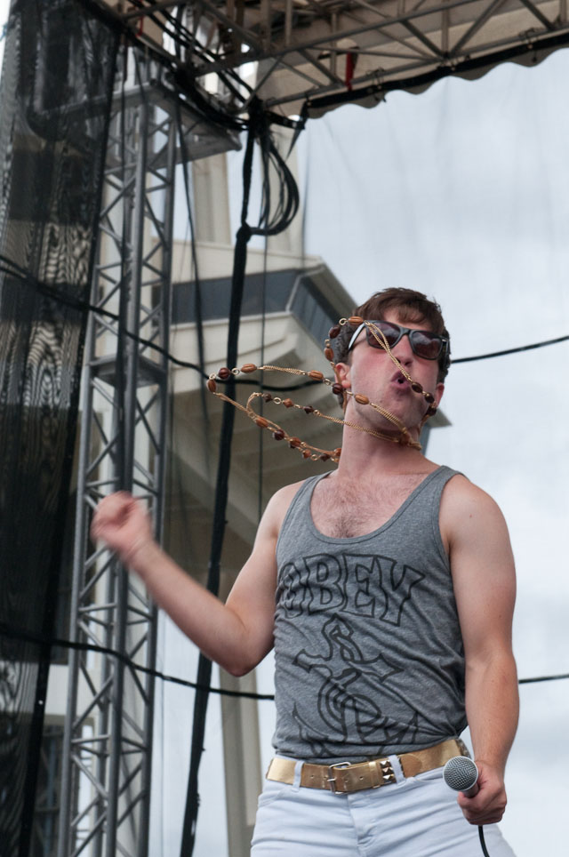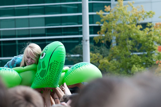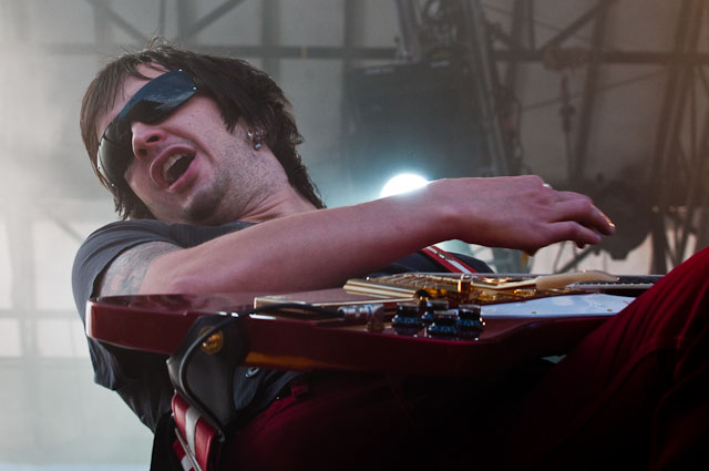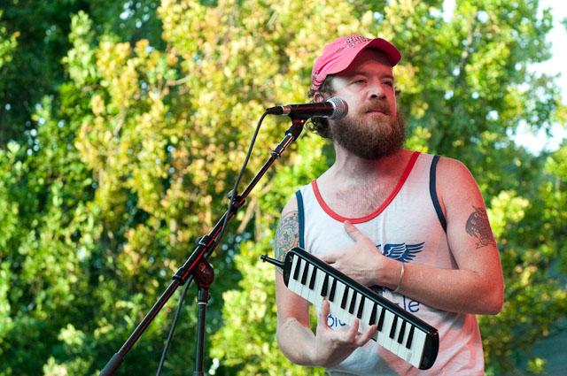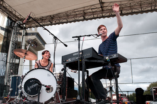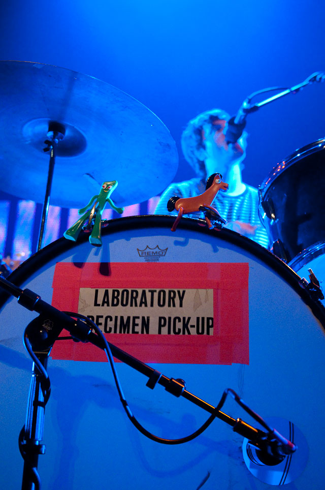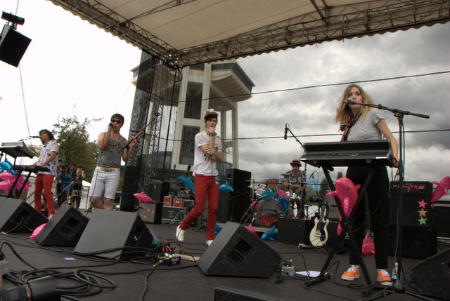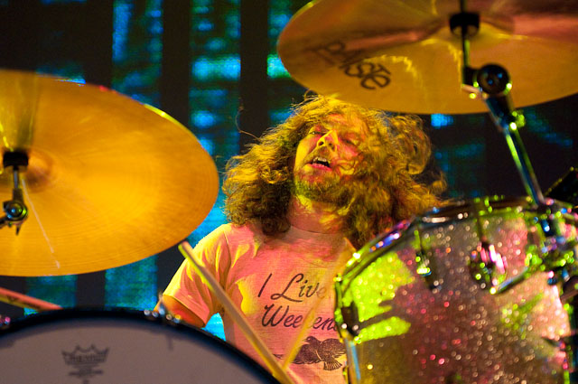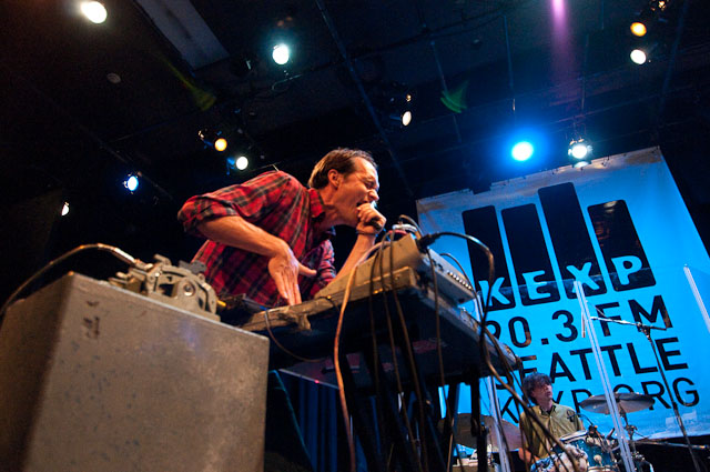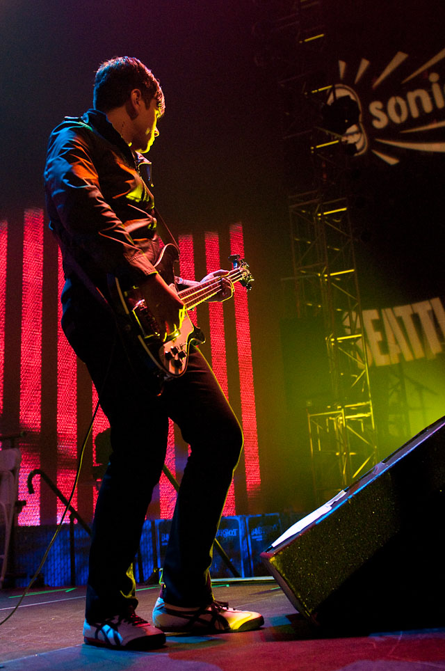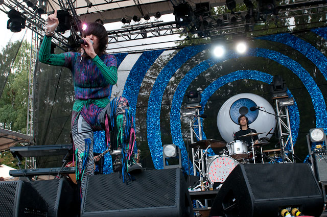 At Seattle's biggest music festival, rain is not unexpected; still, the downpours at Bumbershoot '09 were scary even for this neck of the Pacific Northwest. No bands got electrocuted, but the sound cut out during Black Eyed Peas' set, so that's something. Franz Ferdinand and Modest Mouse were huge draws as the three-day event came to an end last night: Isaac Brock even claimed he was performing with a cracked rib, "but I did it to myself." The previous day, Yeah Yeah Yeahs enjoyed a rare break in the weather and introduced a new touring keyboardist named Jessica. Other highlights: kids crowd-surfing on an inflatable turtle during Natalie Portman's Shaved Head, the reunited Os Mutantes at the KEXP Lounge, and De La Soul covering Gorillaz' "Feel Good Inc" with a full band. Photogs Josh Bis and Josh Lovseth were on hand to capture all the excitement.
