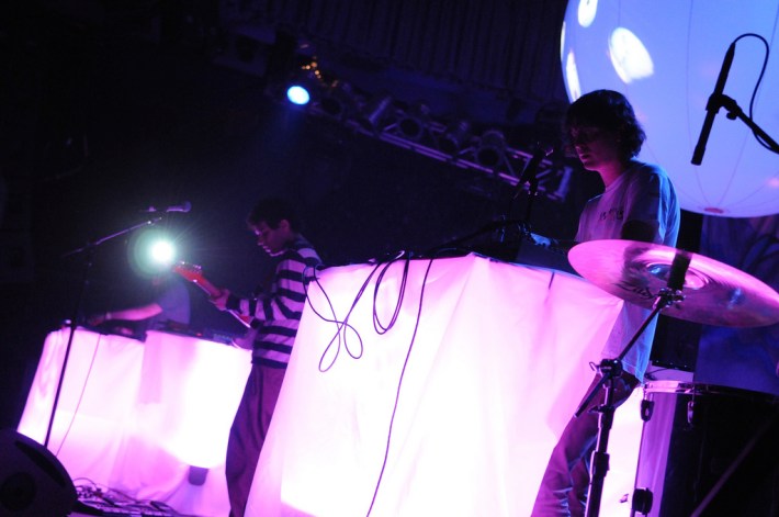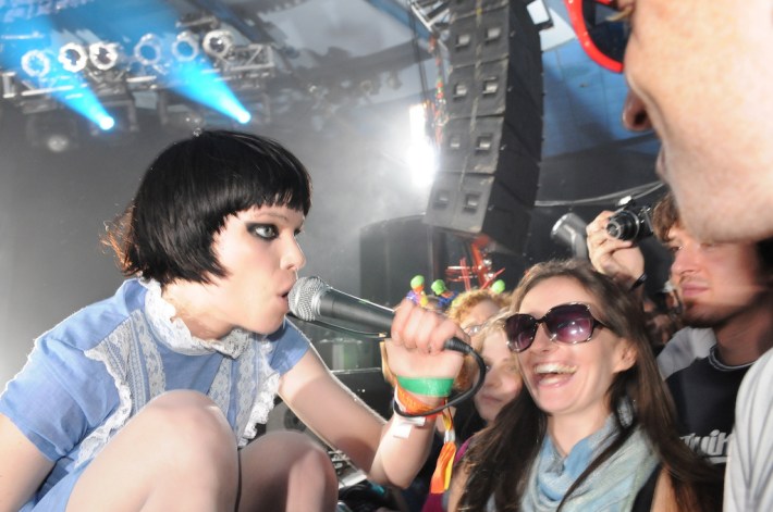 You get a lot of back and forth on 8-bit plagiarizers/wunderkinds Crystal Castles, but maybe nothing else has to be said after they performed a set, largely with Alice Glass's vocals not working, and nobody seeming to notice. Still, she is fun to watch. In awesome contrast to Crystal Castles,No Age & Bob Mould were pure punk-rock joy: They split their set, switching off between No Age and Mould tracks, and things blended together beautifully. The players were clearly excited to be making it happen: Mould was all smiles, doing some Townsend-esque guitar windmills; Dean and Randy at times stared at Mould with wide eyes like they couldn't believe it was happening, while simultaneously tearing through Hüsker Dü classics and No Age rippers. For the encore, Bradford Cox joined the band in a version of the Heartbreaker's "Chinese Rock" and left the stage so the trio could dig into "New Day Rising," the song they first performed together at NoisePop a few months ago. One of the smoothest, non-gimmicky collaborations we've seen.
