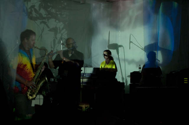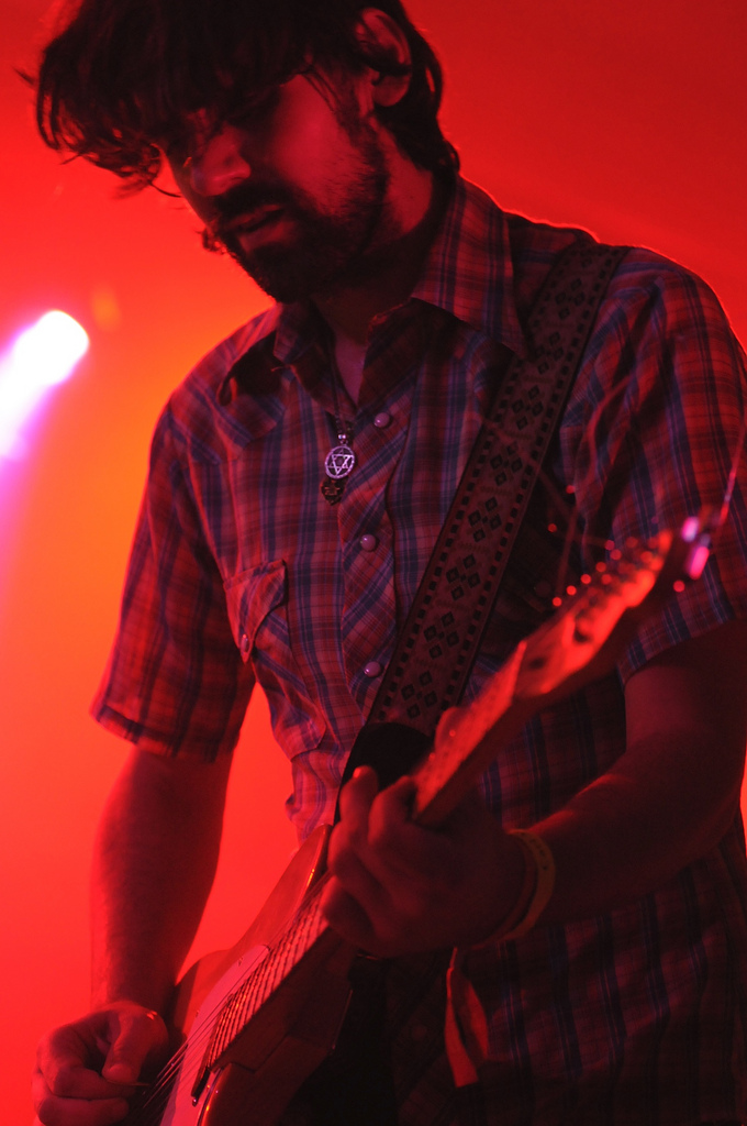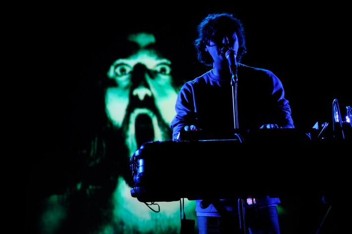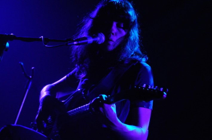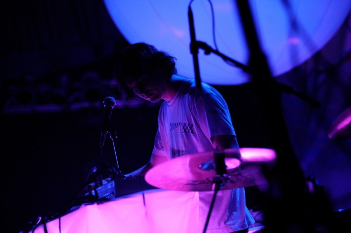 Grouper's set stood in start contrast: Instead of tie-dyed t-shirts and loud percussion, Liz Harris performed in dark shadows with an undulating projection of moonlight on water behind her: Fitting with those patterns, she created layers upon layers of her voice, guitars, and field recordings to create a carefully crafted, sonically seamless set that came off like a smeary nighttime sky without light pollution.
