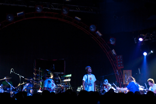 They didn't do anything unexpected, but Deerhunter have become such a full sounding band, it hardly matters. It was our second dose of Bradford Cox of the day: He keeps getting better. The Melvins are also so insanely tight (clearly) at this point and their double drumming hearkened toward Sunday -- which starting with the Boredoms' drum circle and moving through to the Flaming Lips -- a day of grandiosity.