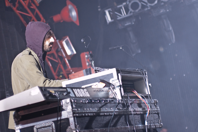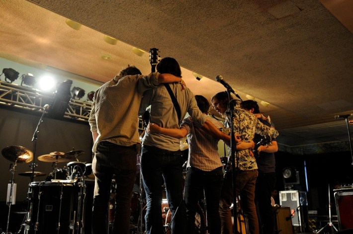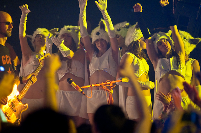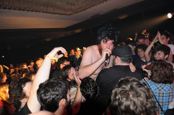 Throughout the weekend it was a bit strange seeing folks approaching Animal Collective as if they're rock 'n' roll icons, asking Avey Tare to sign their beer gut or almost passing out with excitement when holding the door for them to pass ... but when they ended Saturday with an insanely all-consuming set, they felt more than worthy. We were in a good spot toward the front, surrounded by folks dressed like skeletons and animals, dancing up a storm. It was a fitting, exhausting (in all senses) close to the night. (When that bootleg hits, make sure to check into the "Who Could Win A Rabbit" redo.) Deakin was on-site too, just not onstage.