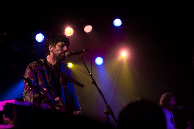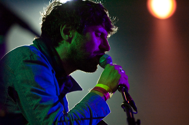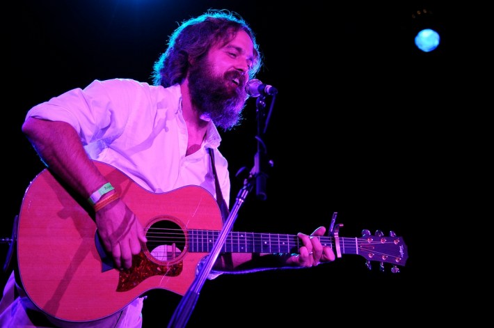 That dark vibe was lifted by Panda Bear, who doesn't often perform on his own, but should. (When we caught him up with the next day, he mentioned working on more solo material in the near future, so if you haven't seen him yet, you'll likely get your chance.) Noah was in standard solo mode, with a mic and a table of electronic devices in front of hypnotically psychedelic projections and old film footage, finding new angles on Animal Collective songs ("Chores," "Guys Eyes," "Daily Routine," "#1") and his various solo shots. You can relive it sans visuals by downloading the whole set. Iron & Wine was probably the weekend's sleepiest set. Sam opened with "Such Great Heights" and stopped mid-way to admonish the crowd for not singing along. Blame it on the alcohol.