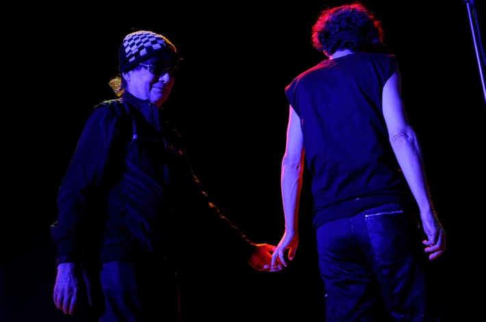 As a part of nostalgia night,Suicide howled and screamed through their 1977 debut. Later in the night Jesus Lizard's David Yow joked about how strange it felt being the third oldest man in the room (and immediately proceeded to pick out a comely young woman to waltz with him onstage): If you wanted to know what it felt to be the oldest, look no further than 71-year-old Alan Vega, the same age as the year his band formed. Weird. Fun fact: Martin Rev used old synthesizers and drum machines. Another: "Frankie Teardrop" is just as harrowing now, in this Iraq War/trashed economy-era as it was thirty-odd years ago.