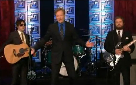 Monsters Of Folk are four dudes better known for other projects, they are the Them Crooked Vultures of the NPR-section of contemporary music, they are like the Traveling Wilburys but not as iconic, all of this is true. But also they are four dudes best known for playing guitar while they sing, which you're reminded of as soon as The Tonight Show's camera pans past M. Ward bent over a piano and Yim Yames who keeps plucking that chicken bass. Conor gets to play it close to the vest with acoustic strums and totally necessary sunglasses (who's gonna be the Orbison if not), and his other Bright Eye Mike Mogis holds it down on electric because just listen to that guitar solo. Centro-matic's Will Johnson is their new drummer. The supergroup performed their album's lead single "Say Please" last night, sounding nice and tight and looking like the best men at a wedding you wish you were invited to.