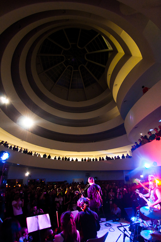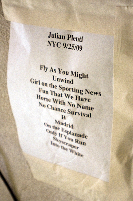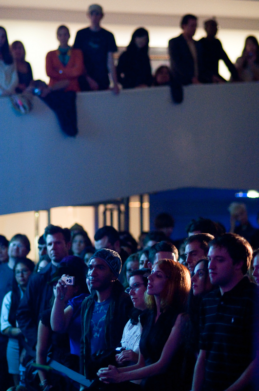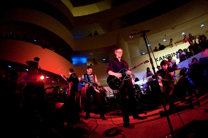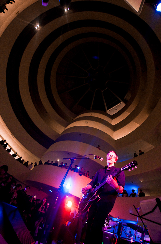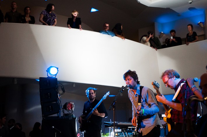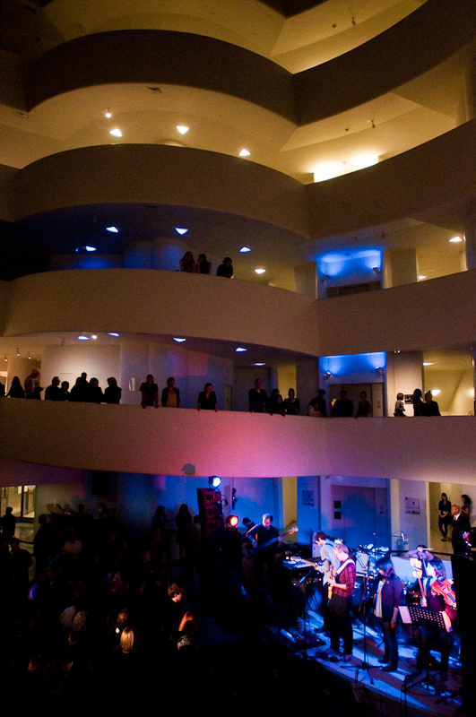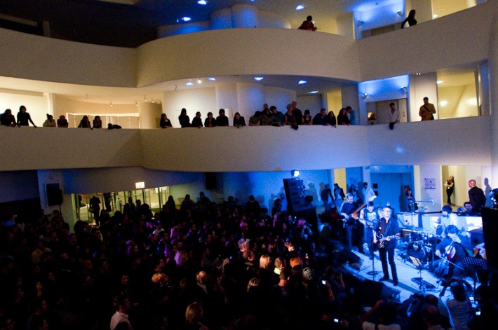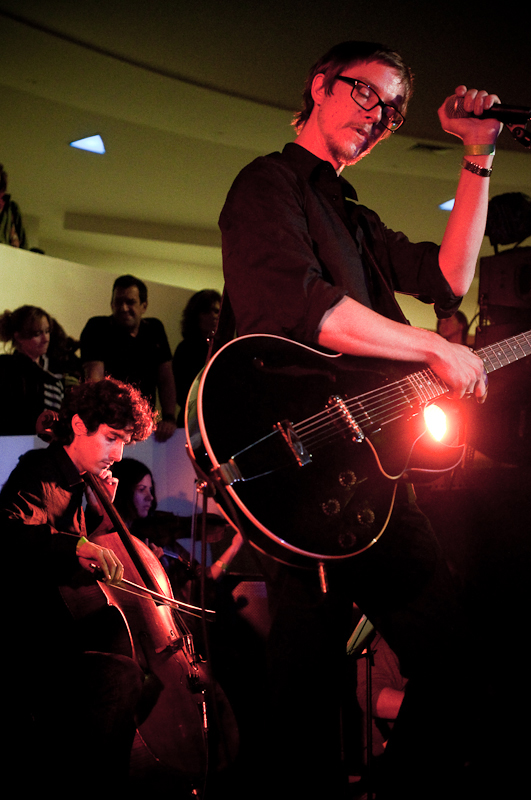 Paul Banks has been having plenti of fun masquerading around under the name Julian, releasing a debut LP at just around the same time (again) as that other smart-dressing NYC contemporary with the same first name. For his part InterPaul's been prolific of late -- a stop at Fallon's, a video with Emily Haines, some free MP3s -- and plans to tour his Skyscraper around the world this November with a band that includes members of French Kicks and the Giraffes. In anticipation, the Interpol singer anchored the antics of the It Came From Brooklyn series' latest installment, this past Friday night in the Solomon R. Guggenheim Museum's Frank Lloyd Wright Rotunda. Banks brought strings, horns, and interesting covers (America's "Horse With No Name," Pixies' "Into The White"), taking the stage after funny things from Eugene Mirman, readings by Rivka Galchen and Hampton Fancher, and an opening musical set by I'm In You.