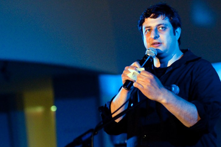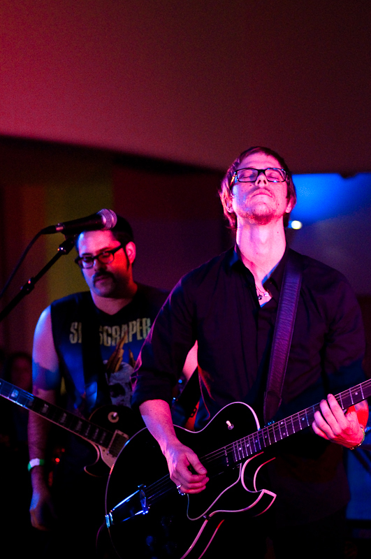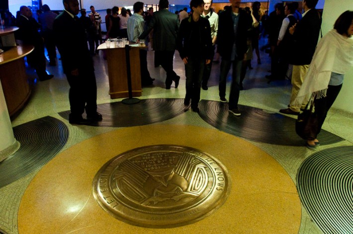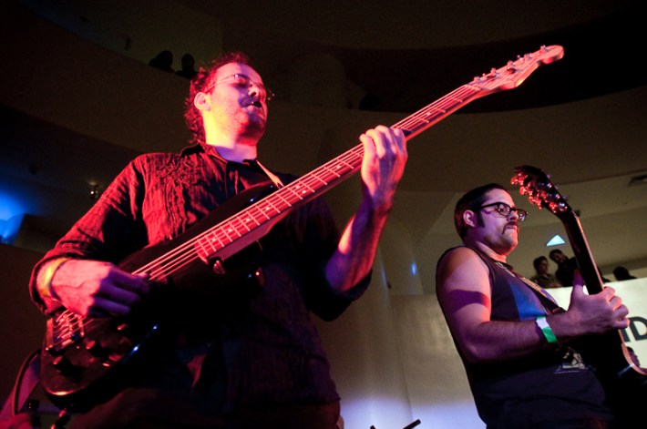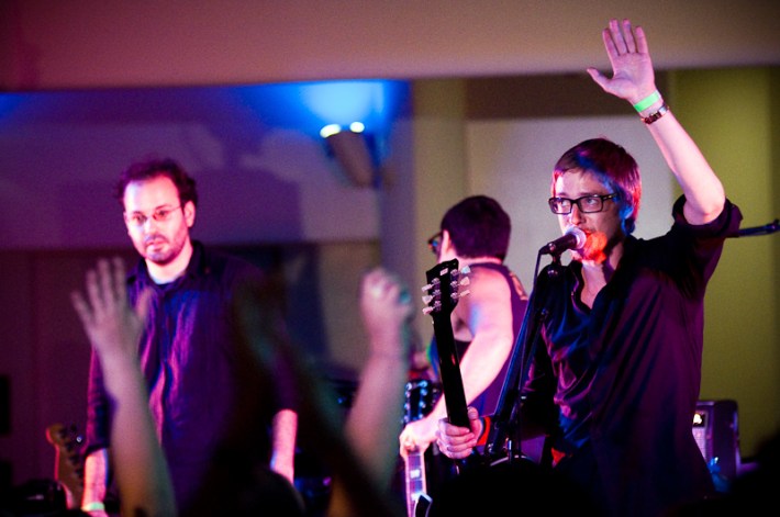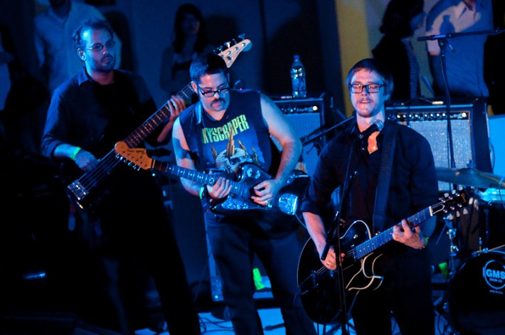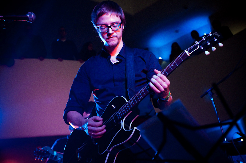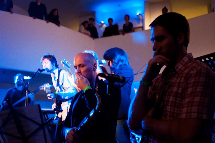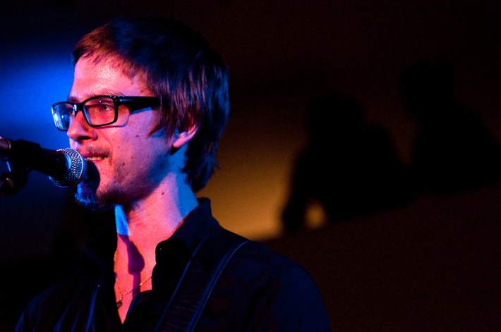 Paul Banks has been having plenti of fun masquerading around under the name Julian, releasing a debut LP at just around the same time (again) as that other smart-dressing NYC contemporary with the same first name. For his part InterPaul's been prolific of late -- a stop at Fallon's, a video with Emily Haines, some free MP3s -- and plans to tour his Skyscraper around the world this November with a band that includes members of French Kicks and the Giraffes. In anticipation, the Interpol singer anchored the antics of the It Came From Brooklyn series' latest installment, this past Friday night in the Solomon R. Guggenheim Museum's Frank Lloyd Wright Rotunda. Banks brought strings, horns, and interesting covers (America's "Horse With No Name," Pixies' "Into The White"), taking the stage after funny things from Eugene Mirman, readings by Rivka Galchen and Hampton Fancher, and an opening musical set by I'm In You.